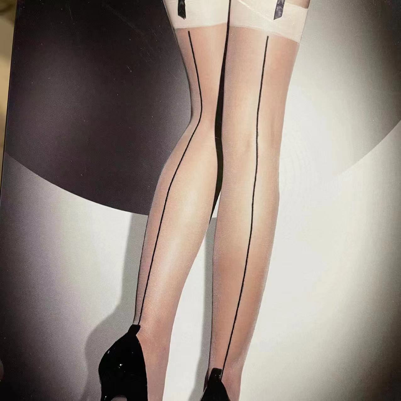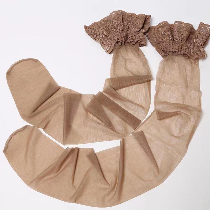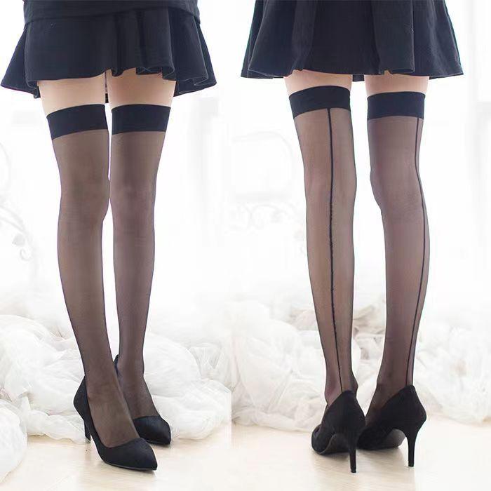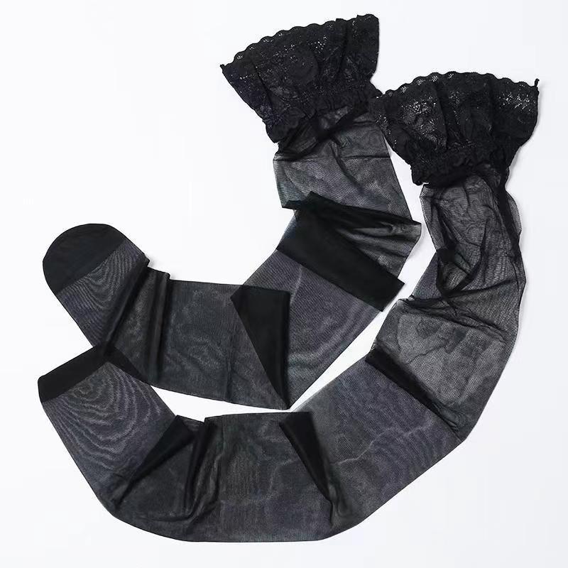 Medias Sexy de Suspensión de Una Pieza, Seda Negra Ultradelgada Tubo Largo Encaje Deseo Puro Estilo Otoñal Hasta la Rodilla Adelgazantes para Piernas Hermosas