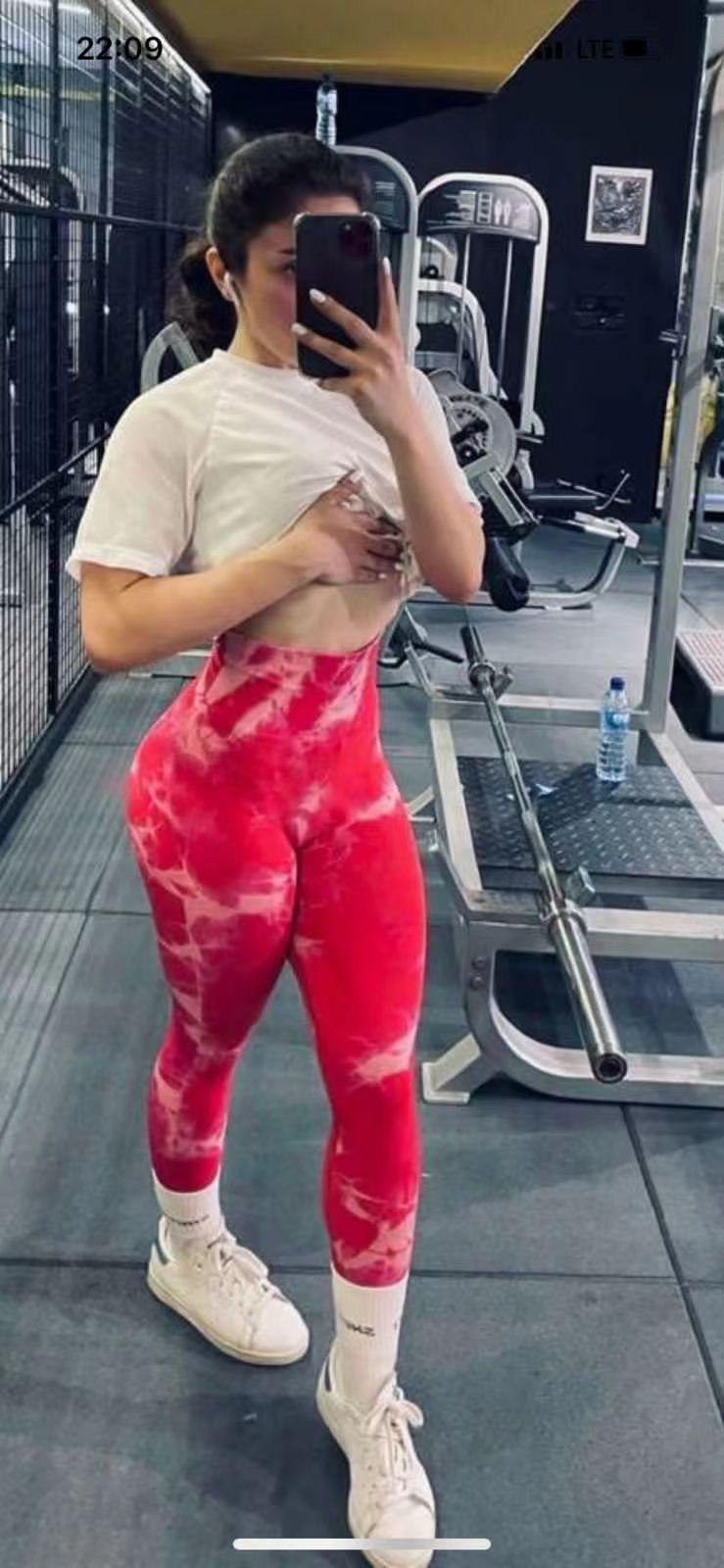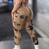 Pantalones de yoga Tie-Dye para mujer, de cintura alta, ajustados, deportivos, con realce de cadera, color melocotón, para fitness y yoga, nuevos en stock.