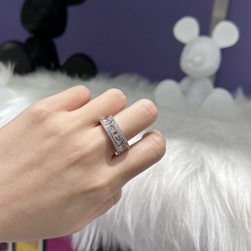 Anillo de cerdo con letra de circón con microincrustaciones de alta calidad con diseño de nicho, anillo de temperamento de lujo ligero para mujer, personalidad, dedo índice, moda