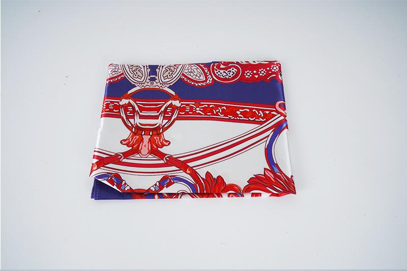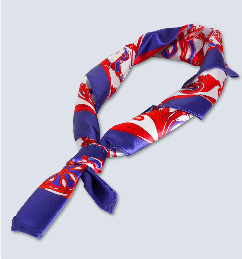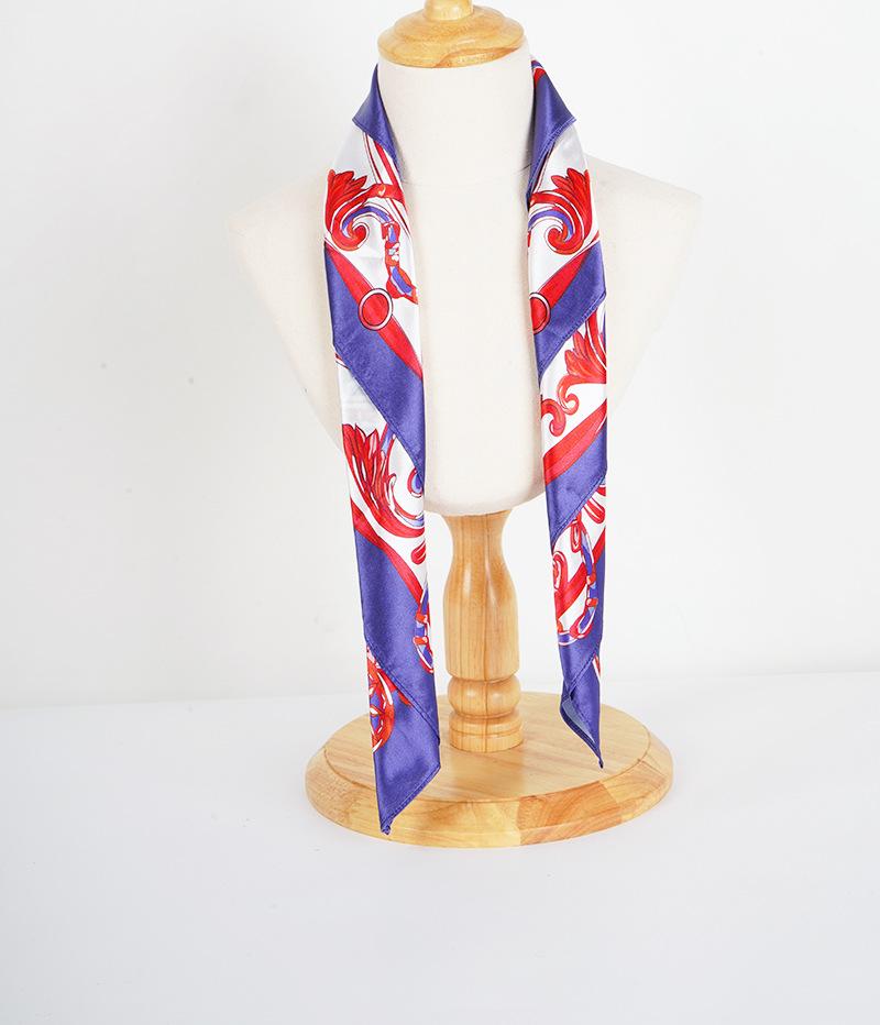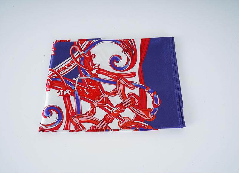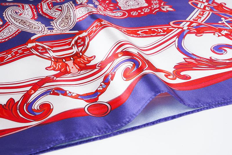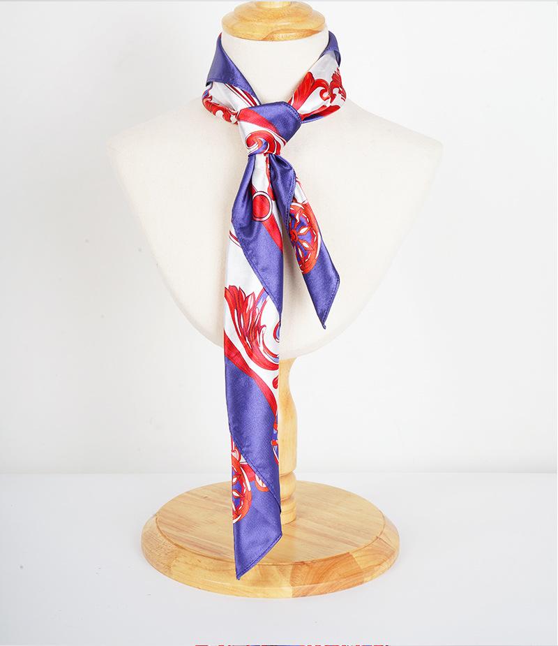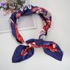 Bufanda azul de alta calidad para mujer, nueva bufanda cuadrada pequeña estampada de 70 cm de seda de imitación de comercio exterior 2023, bufanda de seda con lazo para bolso.