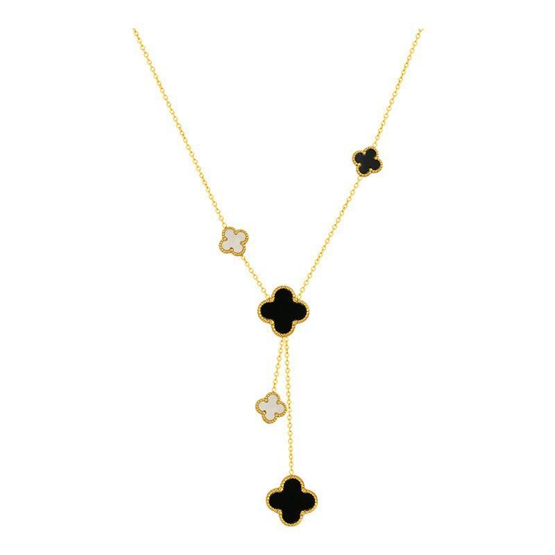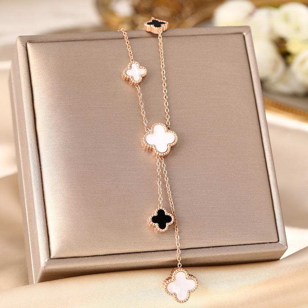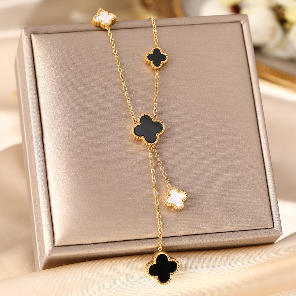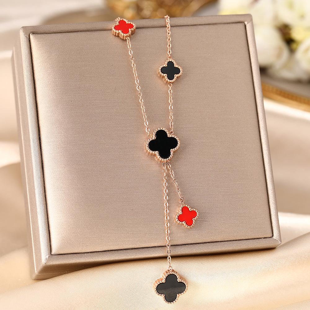 Collar de acero de titanio con diseño de celebridad transfronteriza de Internet para mujer, con trébol de cuatro hojas de doble cara rojo y negro, colgante de lujo ligero y sencillo, cadena de clavícula de alta calidad.