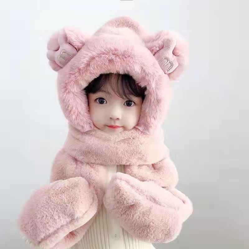 Gorro de oso de invierno para niños, grueso, cálido, resistente al viento y al frío, bufanda de tres piezas, de una sola pieza