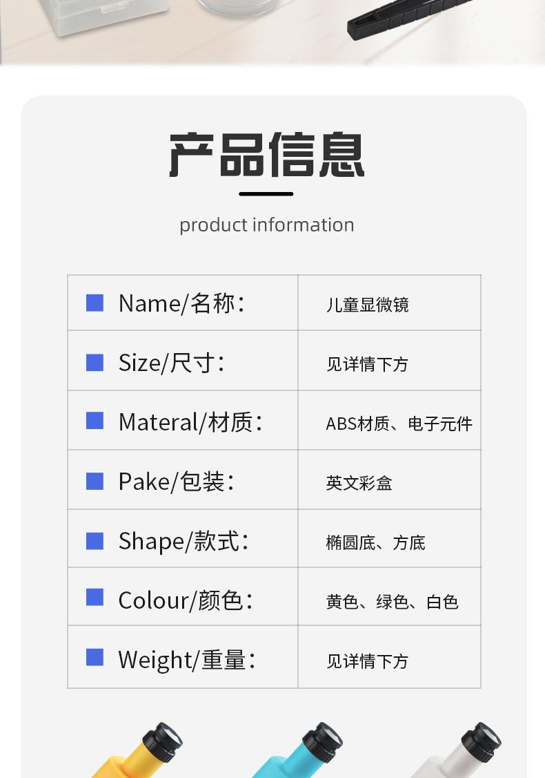 Configuración: Cuerpo principal*1, manual de instrucciones*1, soporte para teléfono móvil*1, caja de muestras*2, frasco de recolección*2, clip*1, muestra*1, placa de cultivo*1, portaobjetos*7, pegatina*1