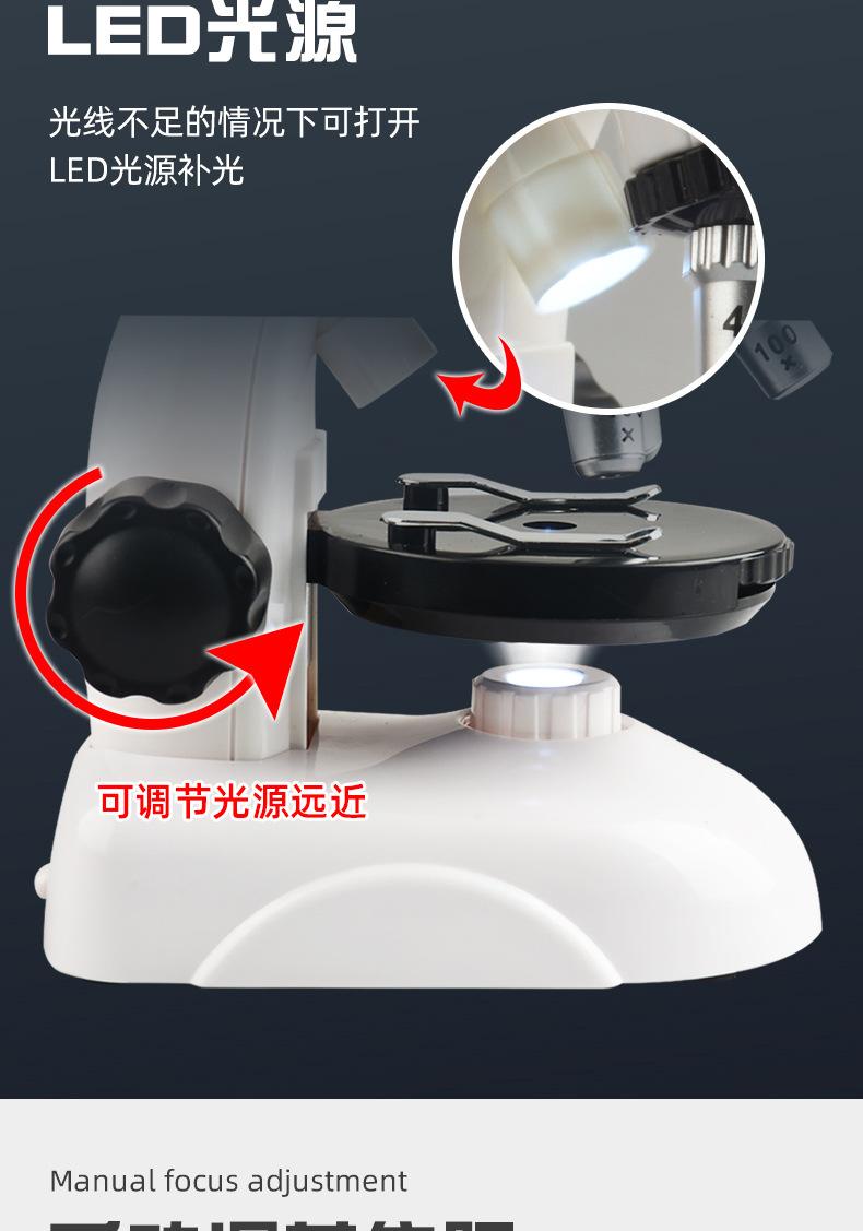 Función:Conmutación de tres aumentos (100x, 400x, 1200x) enfoque ajustable