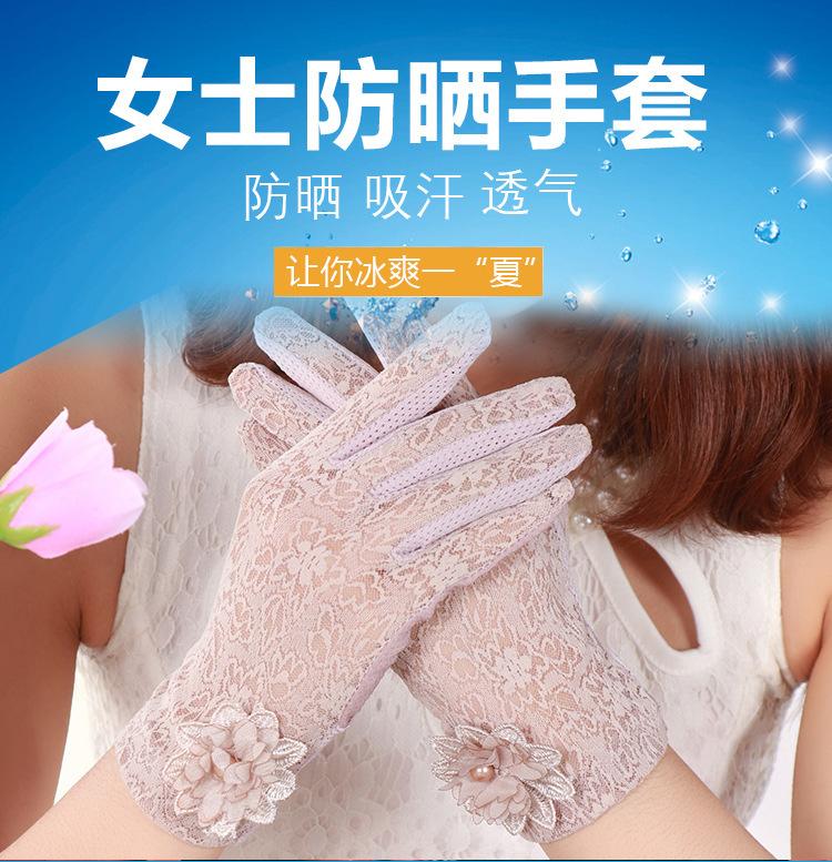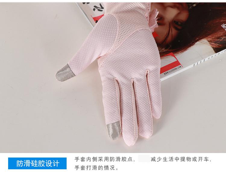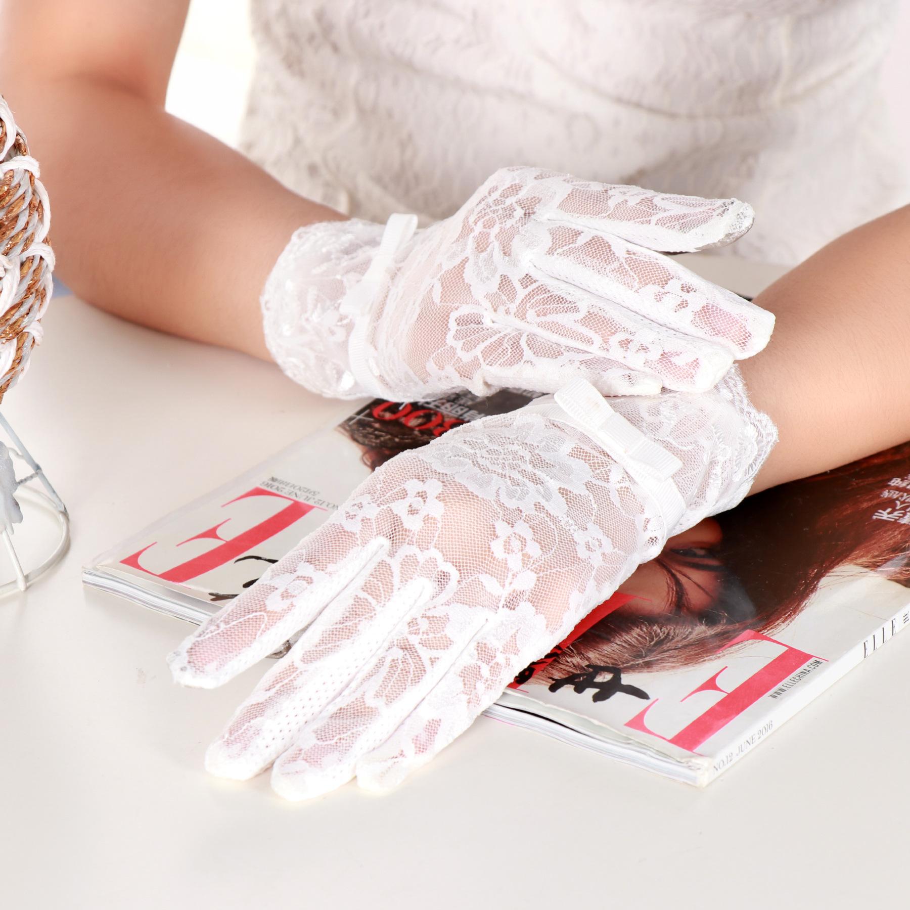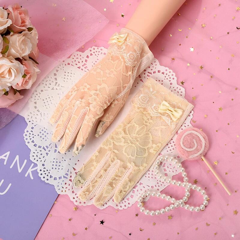 Guantes de protección solar al por mayor para mujer, verano, delgados, de encaje, compatibles con pantalla táctil, para conducir al aire libre, montar, coche eléctrico, guantes de seda de hielo para novia
