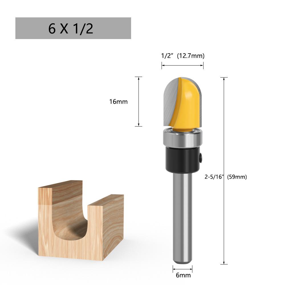 Los mangos de las fresas para carpintería incluyen: 3 mm, 6 mm, 1/4" (6,35 mm), 8 mm, 12 mm, 1/2" (12,7 mm)