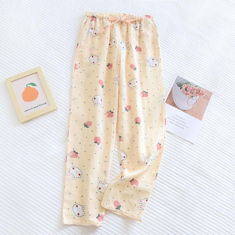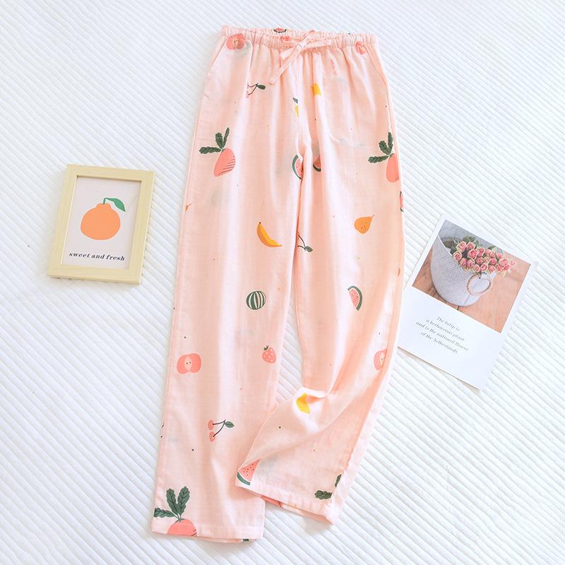 Pantalones de pijama de gasa doble para mujer, de verano, con aire acondicionado, antimosquitos, de algodón, holgados, 3 colores