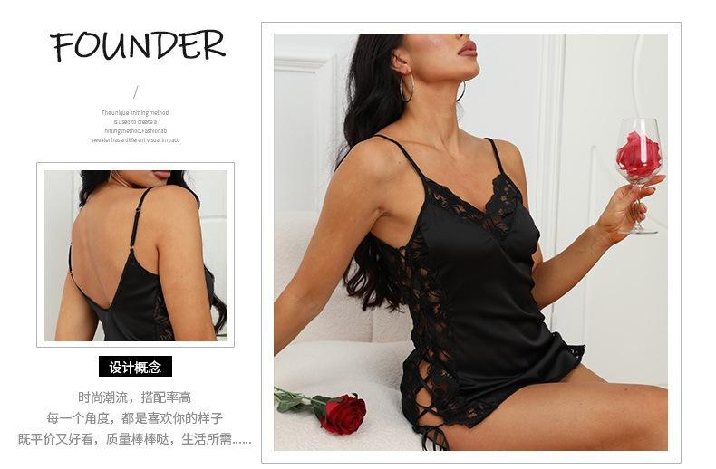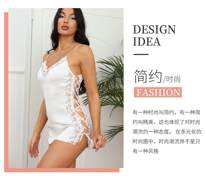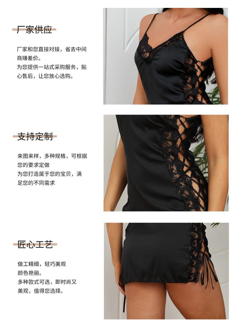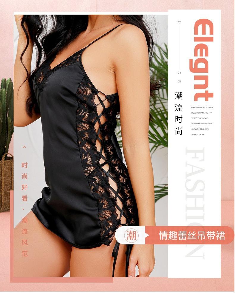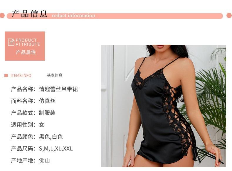 Transfronterizo Amazon lencería sexy uniforme seductor talla grande encaje falda con tirantes pijamas de seda artificial ropa para el hogar