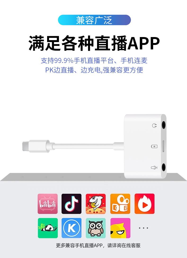 Live No.1 es adecuado para tarjeta de sonido para teléfono móvil Apple, convertidor de audio en vivo para admitir línea de datos de llamada U-shield para conectar con micrófono