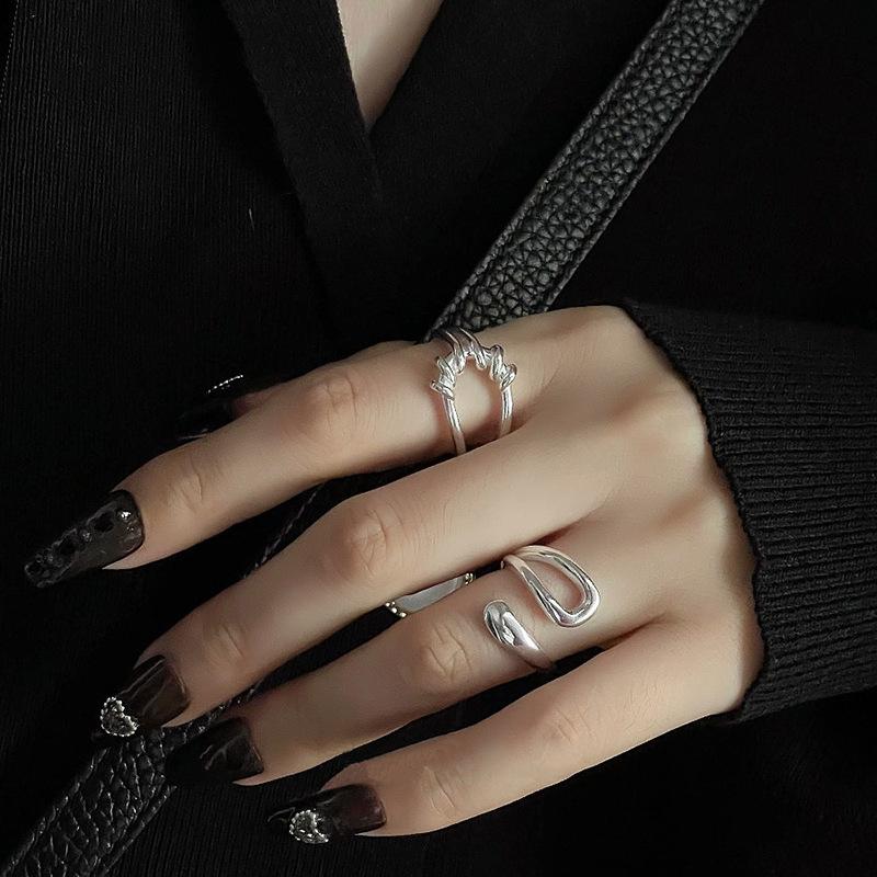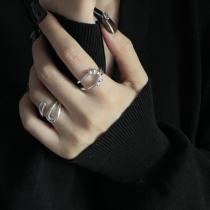 Anillo hueco de enrollamiento de línea para mujer, moda, personalidad, temperamento versátil, nicho, plata S925 chapada, anillo abierto para dedo de comida