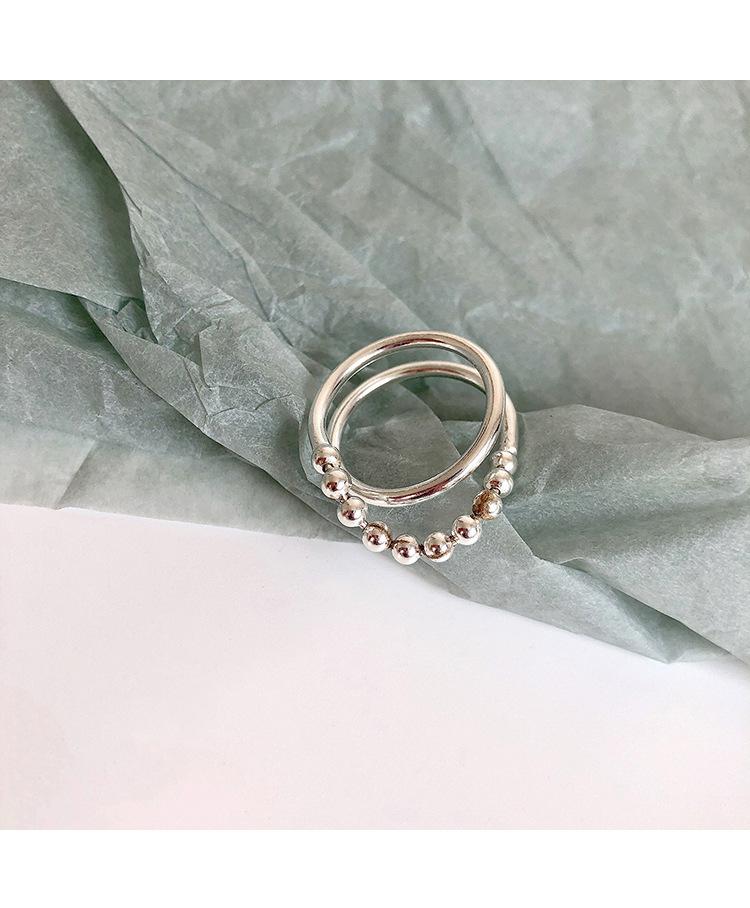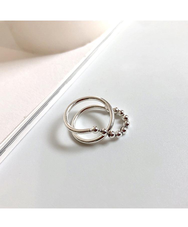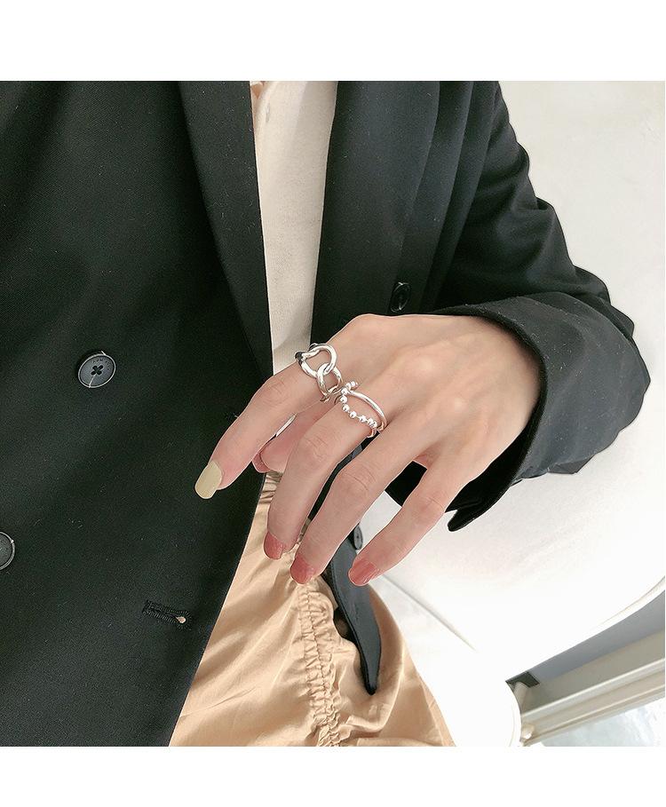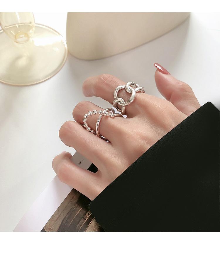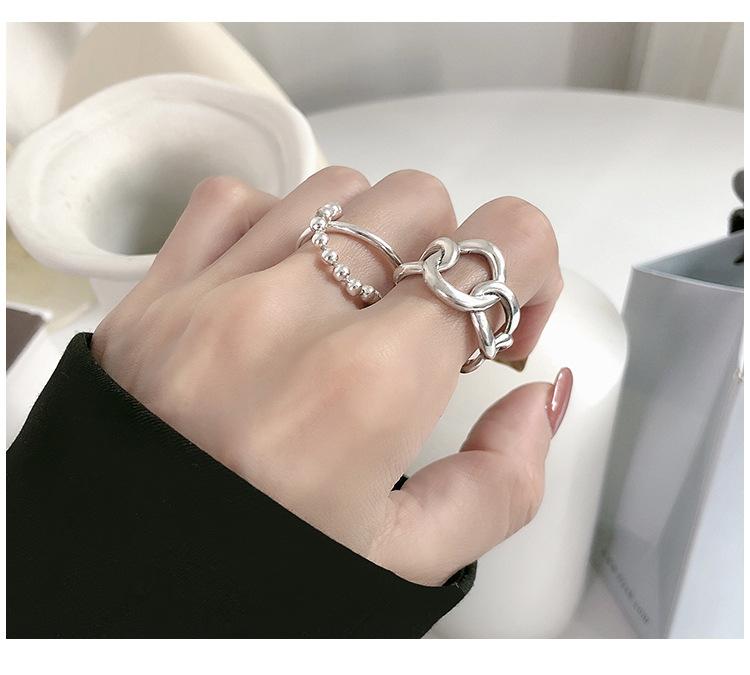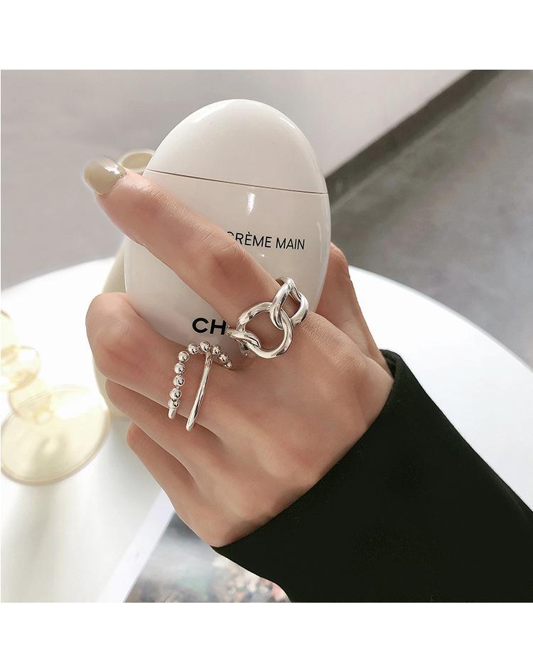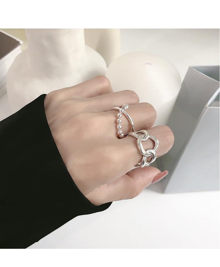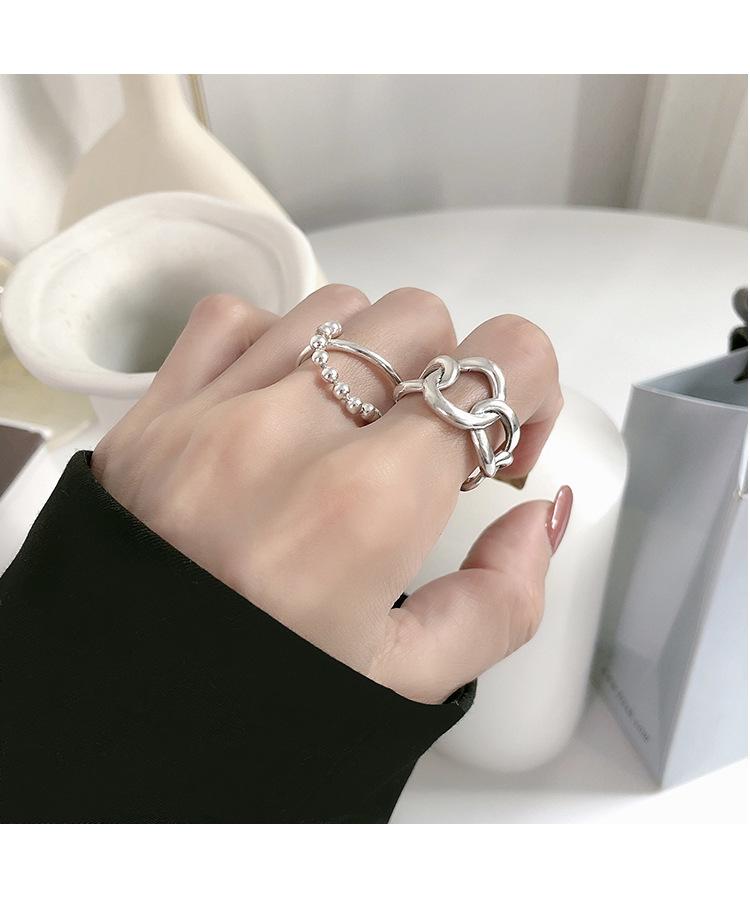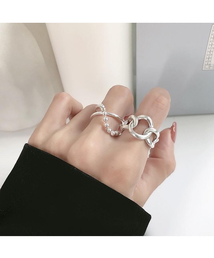 Anillo de Cuentas Redondas de Moda Europea y Americana para Mujer Líneas Retro Anillo de Dedo Índice Plateado en Plata 925 Joyería Punk Trendy de Puesto Callejero Coreano