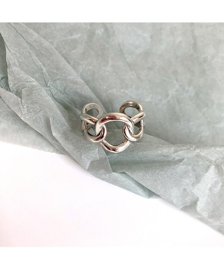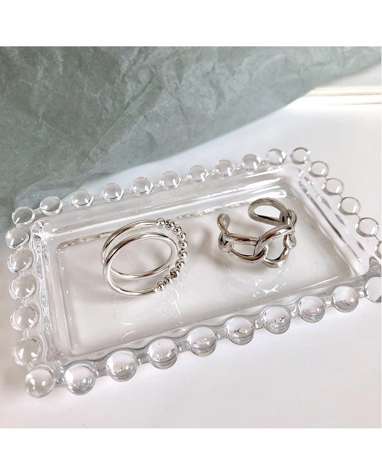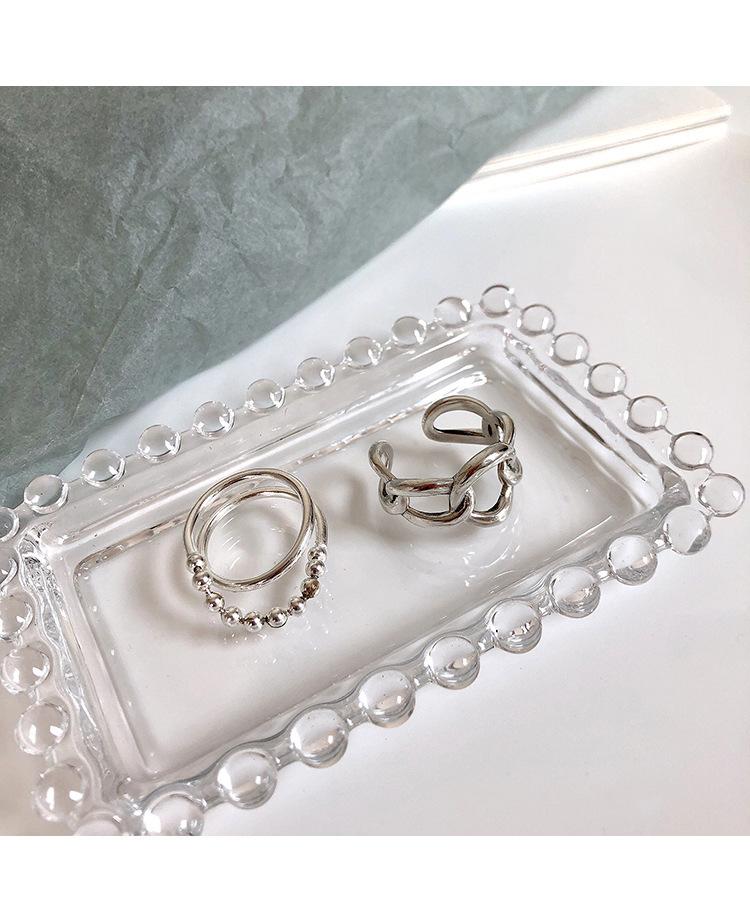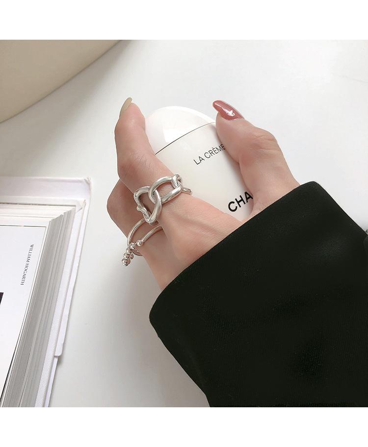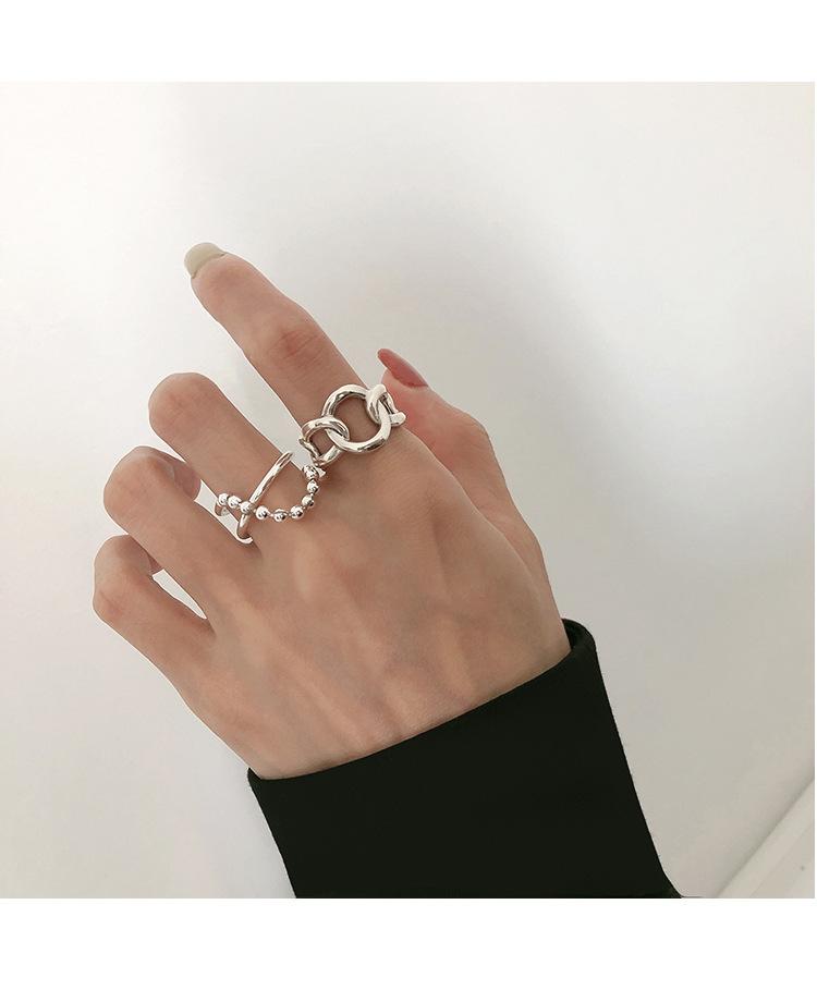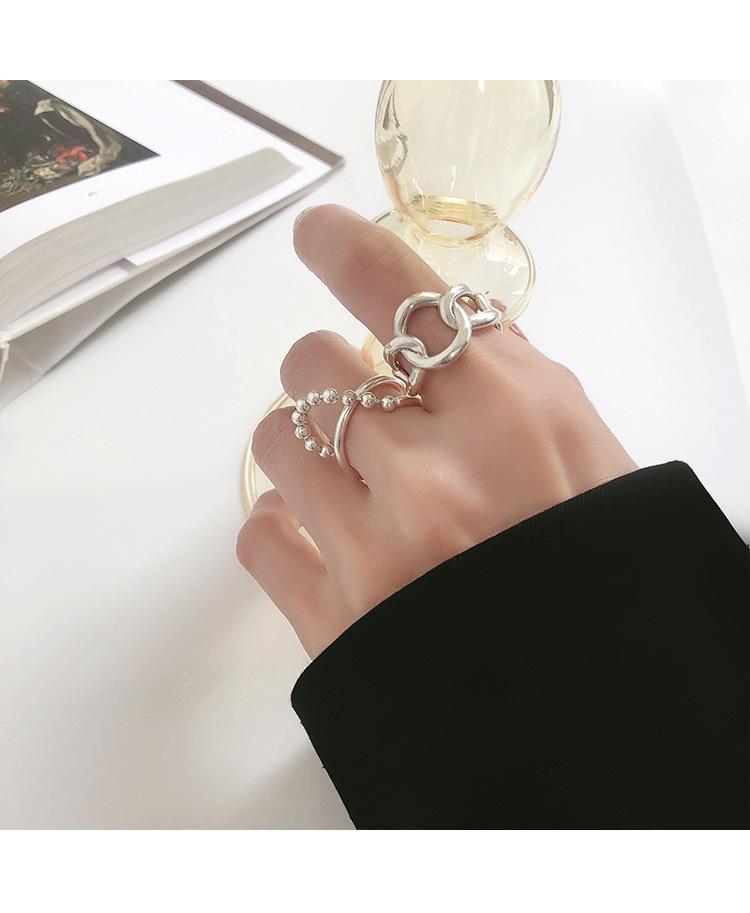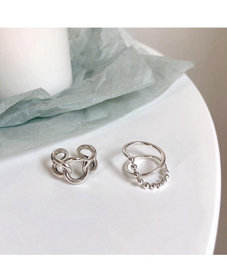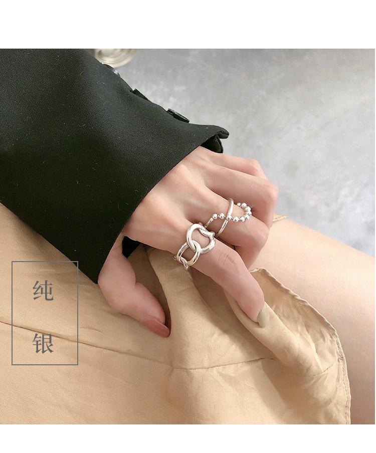 Anillo de Cuentas Redondas de Moda Europea y Americana para Mujer Líneas Retro Anillo de Dedo Índice Plateado en Plata 925 Joyería Punk Trendy de Puesto Callejero Coreano