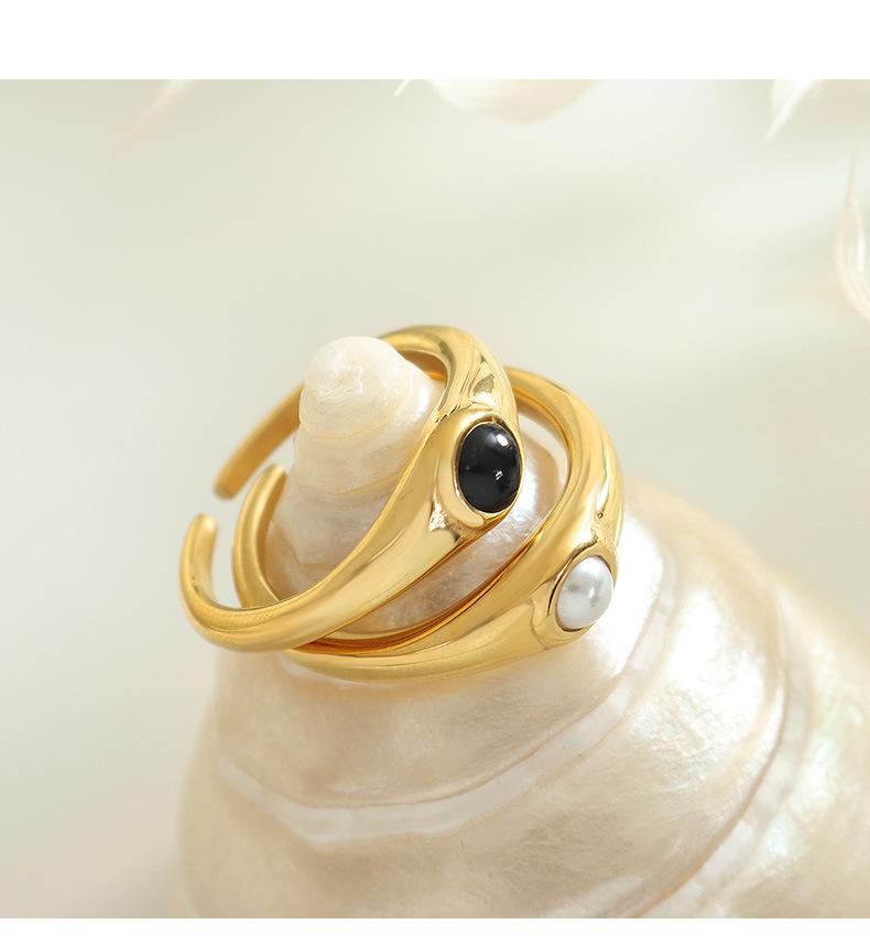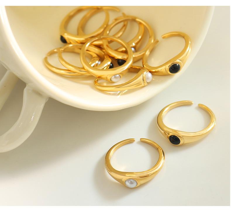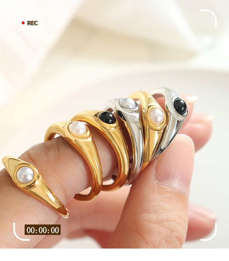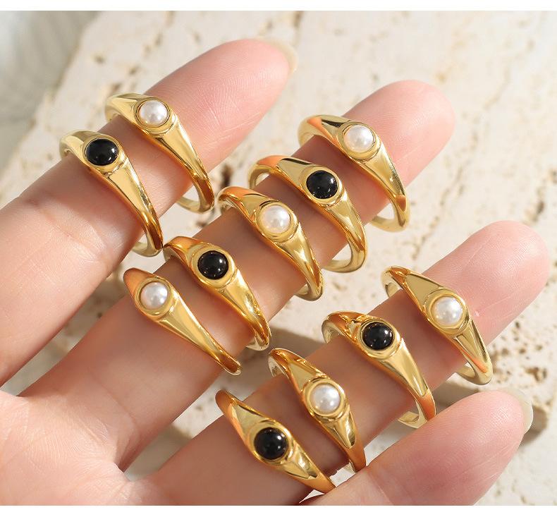 A421-Steel White Glass Bead Ring, A421-Steel Black Glass Bead Ring, A421-Gold White Glass Bead Ring, A421-Gold...