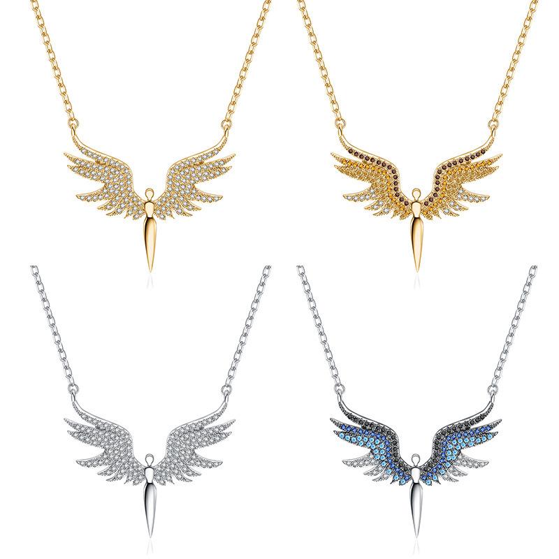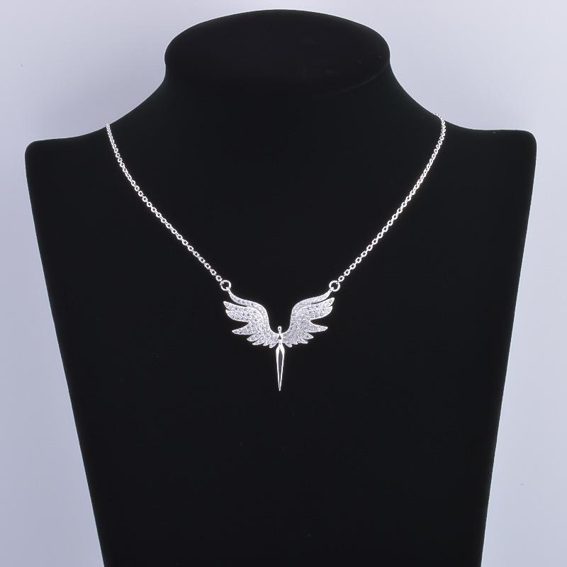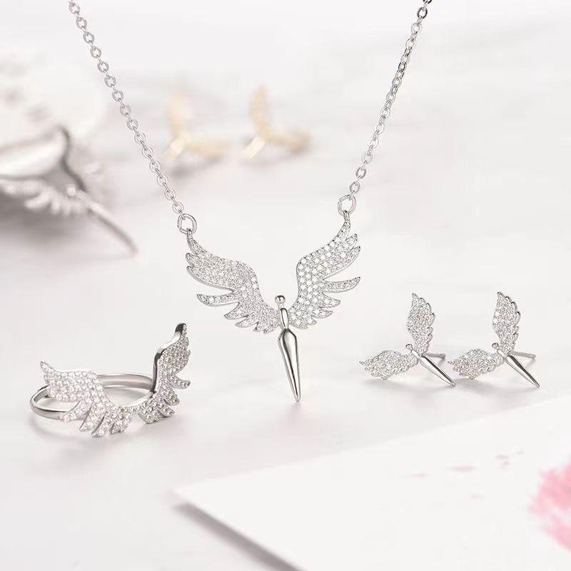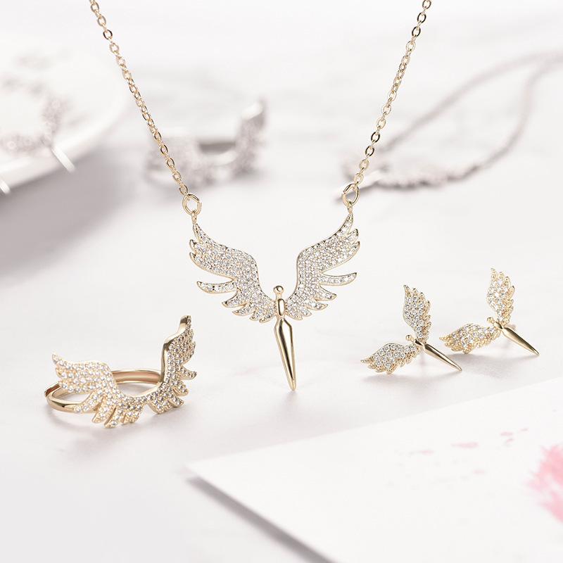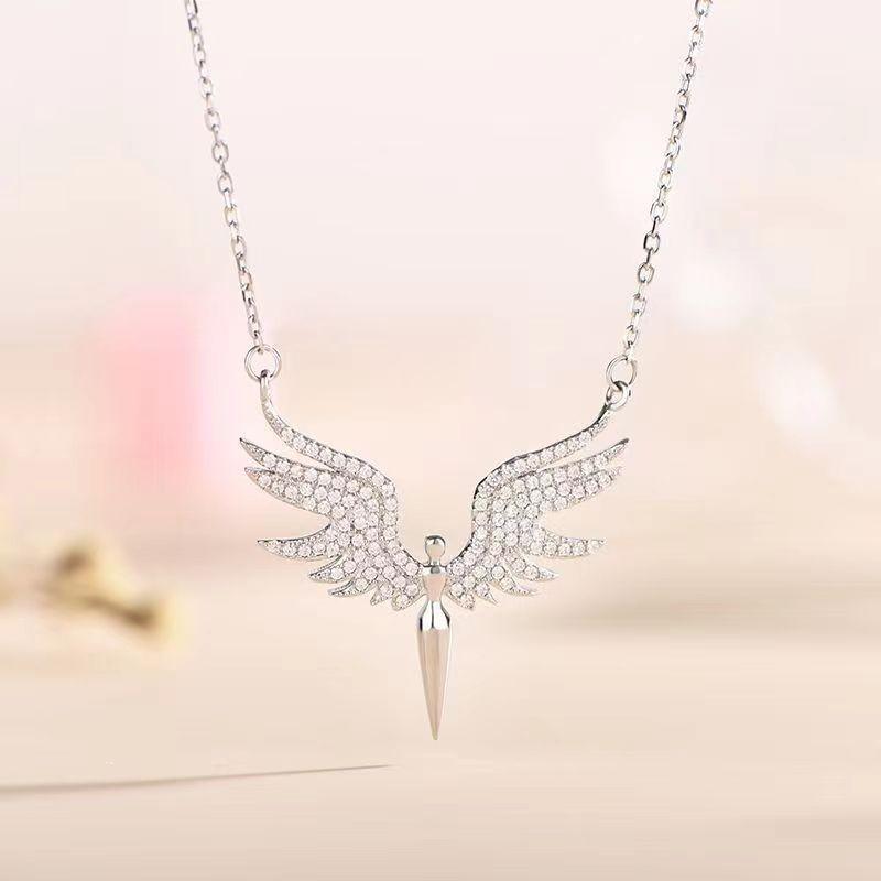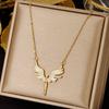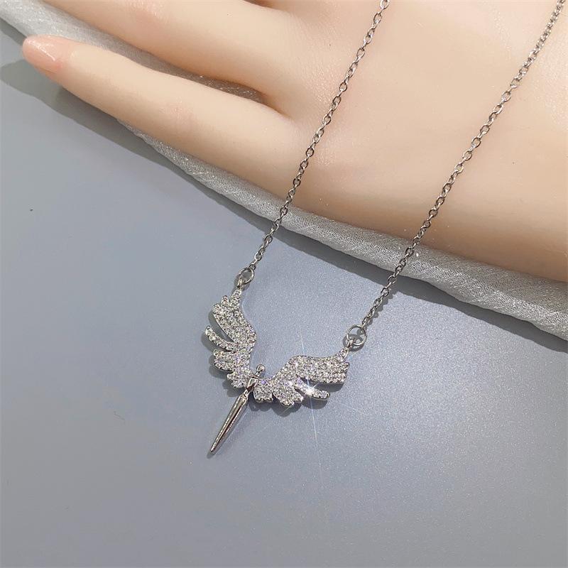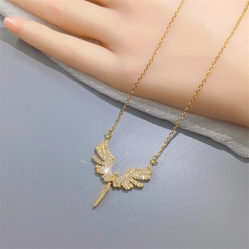 Collar de acero de titanio con circonitas microincrustadas de cobre para mujer, alas de ángel, alas creativas, cadena de clavícula, moda transfronteriza, a juego.
