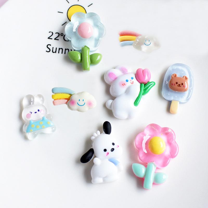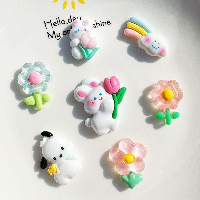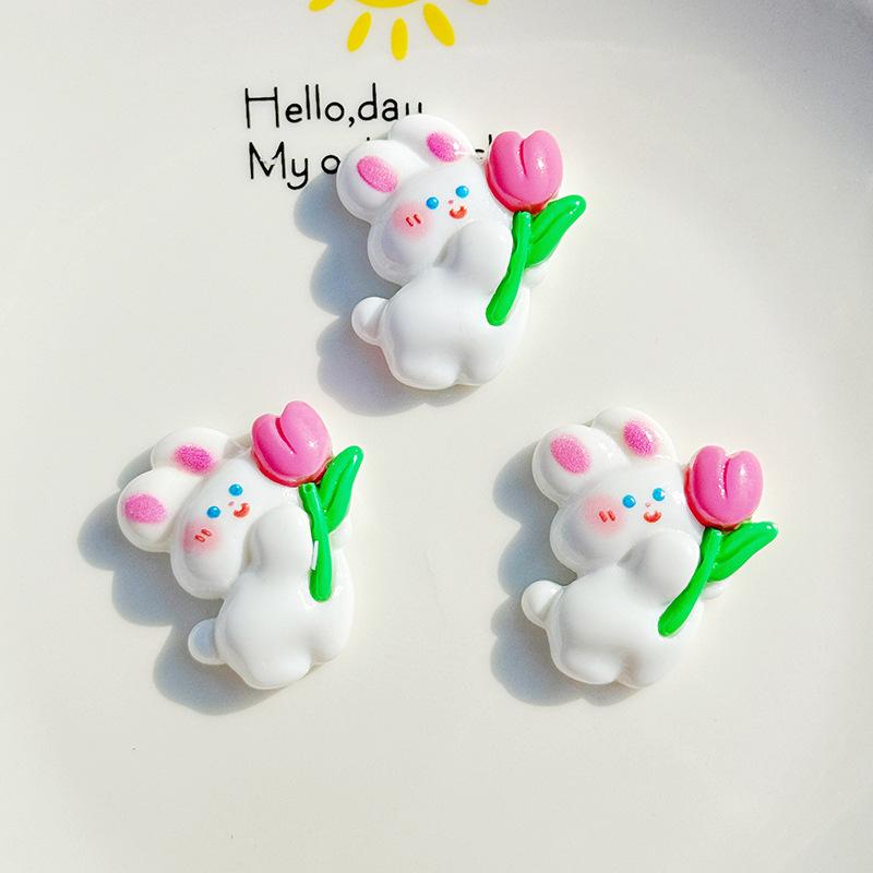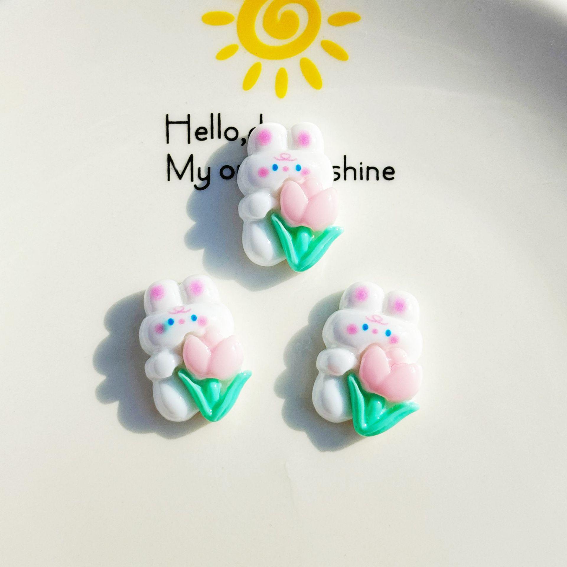 Dibujo animado brillante flor conejo diy accesorios de resina para joyería parche de pegamento crema para funda de teléfono móvil accesorios para el cabello material para accesorios
