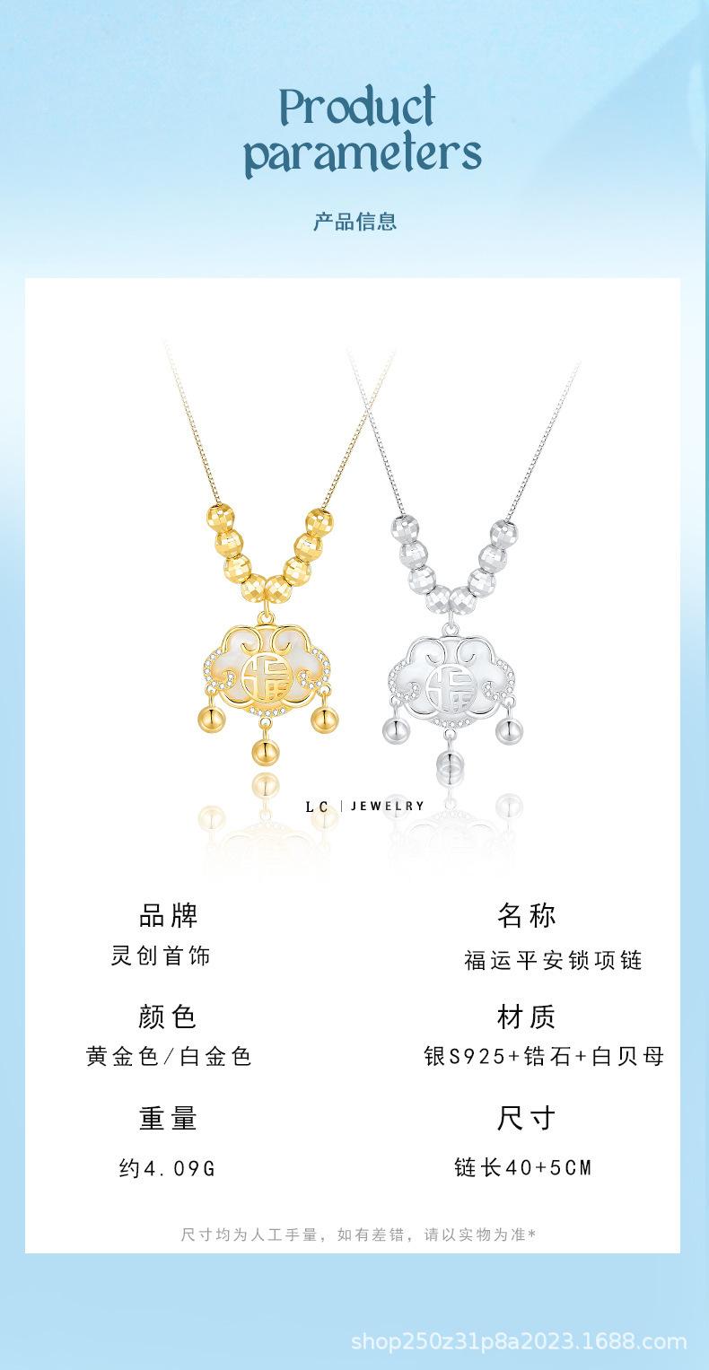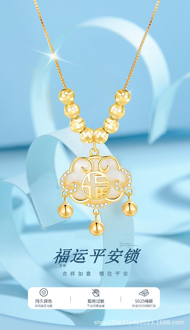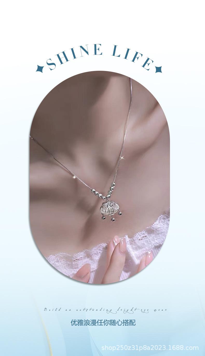 Collar con cierre de seguridad de la suerte en plata esterlina S925 para mujer, ligero, de lujo, estilo chino retro, diseño de nicho, cadena de clavícula de alta calidad