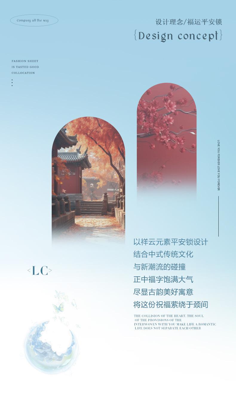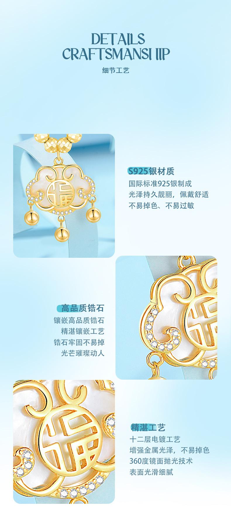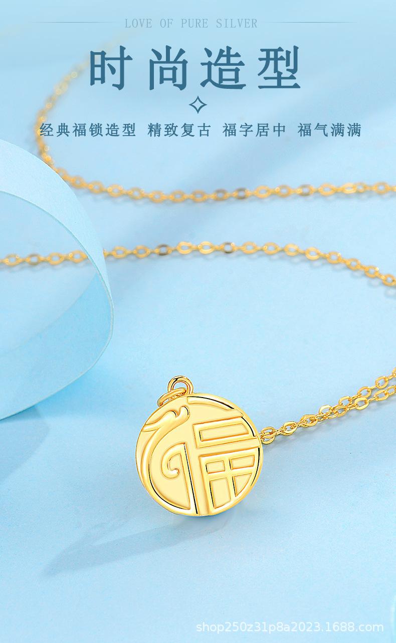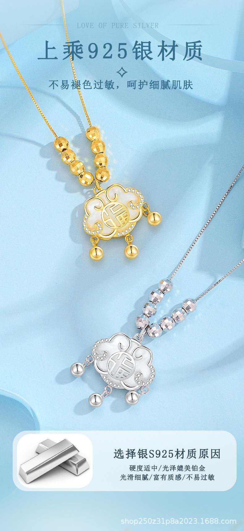 Collar con cierre de seguridad de la suerte en plata esterlina S925 para mujer, ligero, de lujo, estilo chino retro, diseño de nicho, cadena de clavícula de alta calidad
