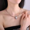 Collar de cadena de clavícula de acero de titanio con diseño de marca redonda de estilo chino, con patrón de la suerte para mujer