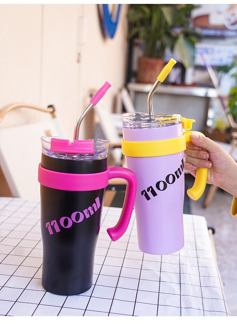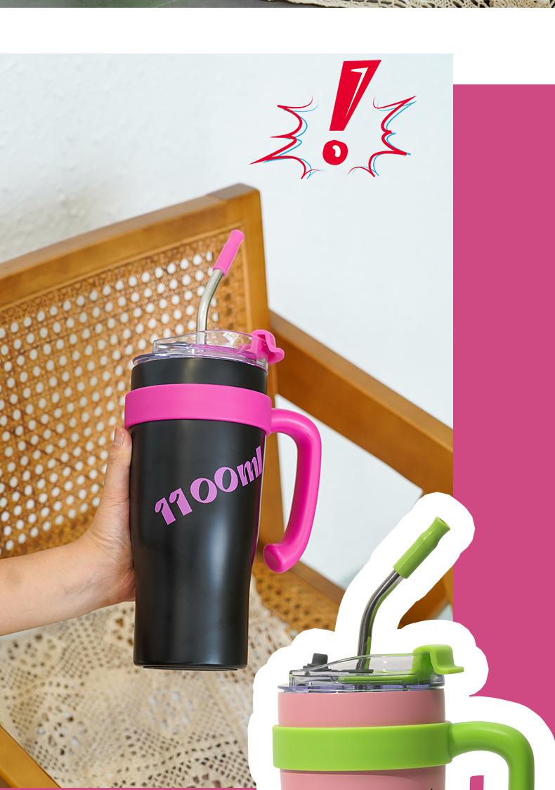 Vaso de hielo de 40 oz taza americana Big Mac transfronteriza taza de coche de acero inoxidable pajita para beber directamente taza de doble uso personalizada
