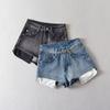 706 Shorts de mezclilla de cintura alta para mujer 2022 Verano Nuevo Ajustado Alto Sexy Ajustado Pantalones cortos