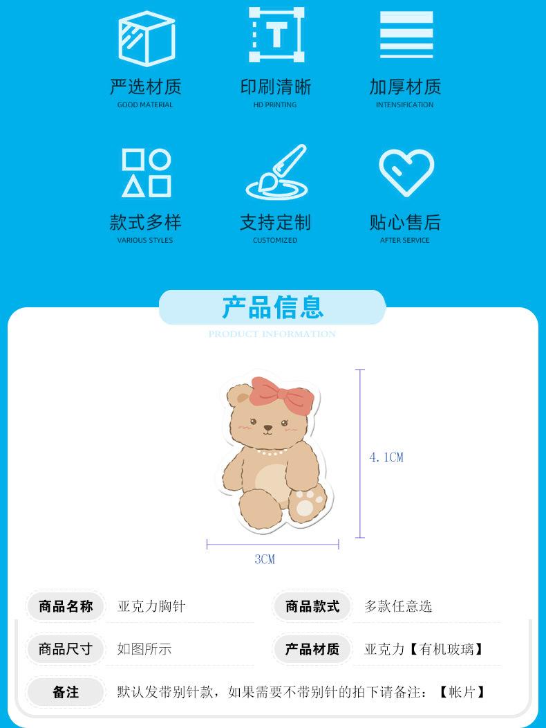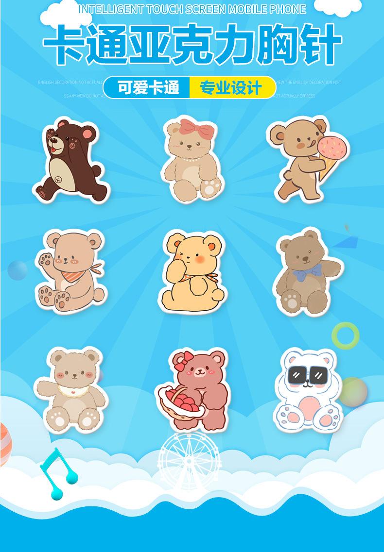 Ins Coreano lindo lindo broche acrílico al por mayor insignia de oso de dibujos animados colgante para bolso joyería pequeña para niña