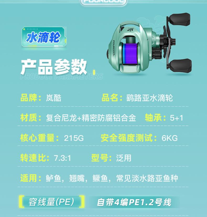 Jiachaoni Luya rueda de gota de agua rueda de gota de agua metal magnético doble freno antiexplosión línea carrete de pesca carrete de pesca de tiro largo