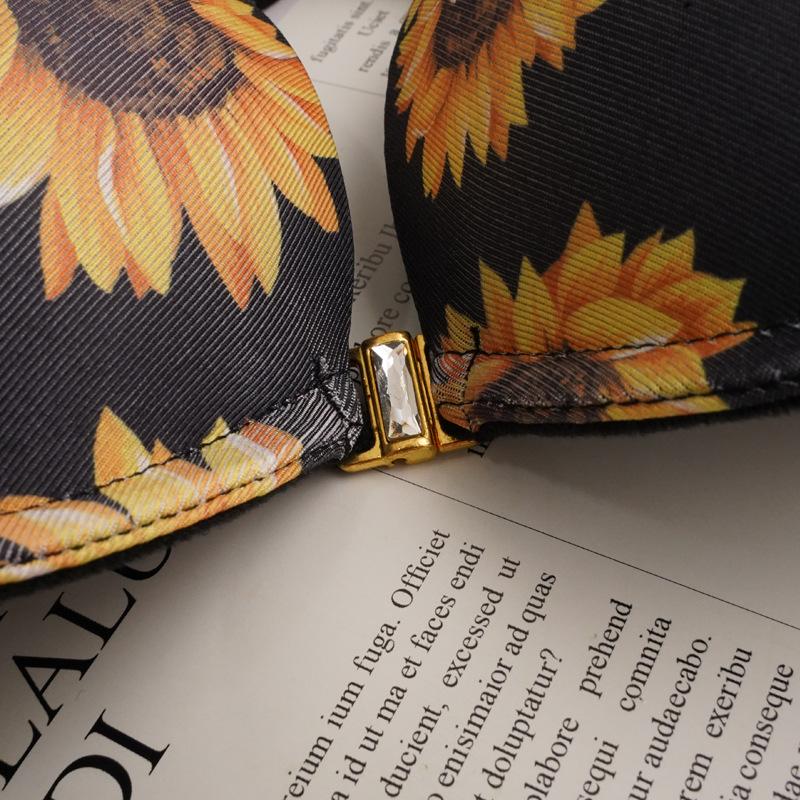 Traje de lencería sexy con hebilla frontal en stock Sujetador push-up de encaje Sujetador de niña Sujetador de crisantemo moldeado