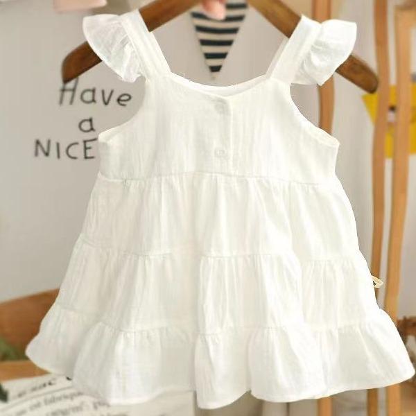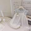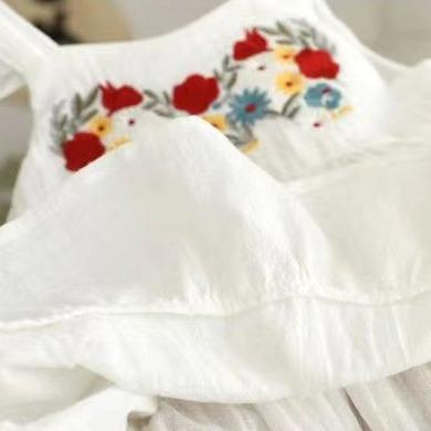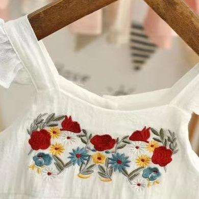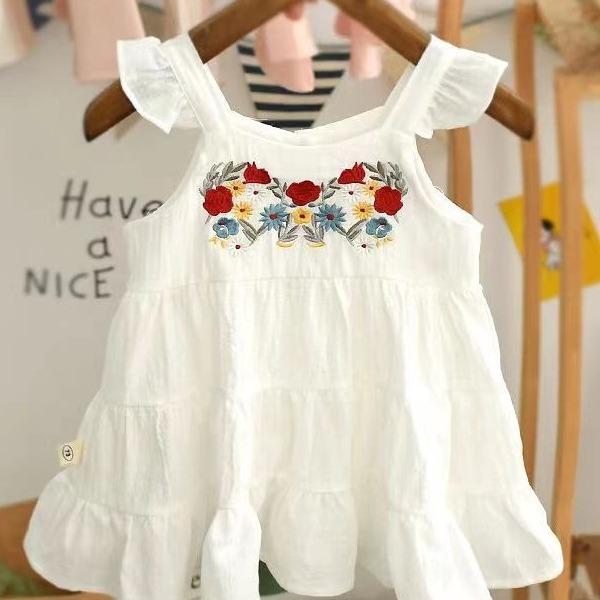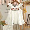 Vestido de verano para niñas, elegante, personalizado, de marca de moda, estilo coreano, bordado con flores, falda de princesa blanca
