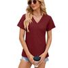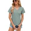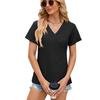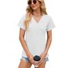 Camiseta de manga corta holgada con cuello en V cruzado de color sólido para mujer, primavera y verano, comercio exterior transfronterizo europeo y americano de Amazon 2024
