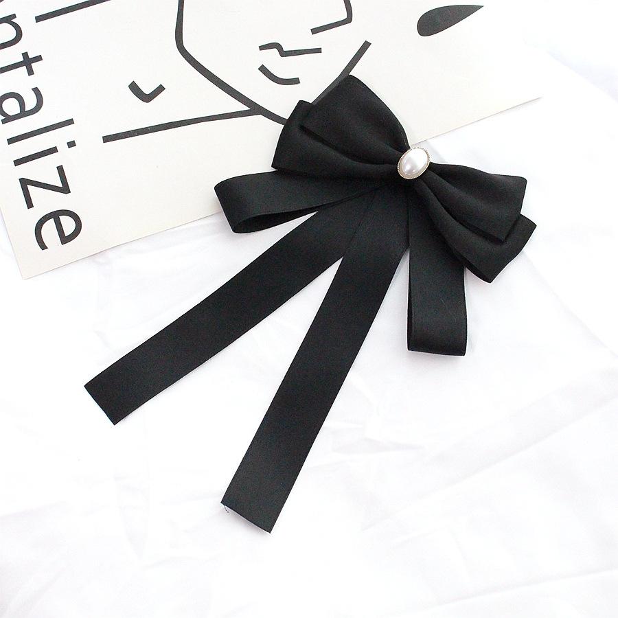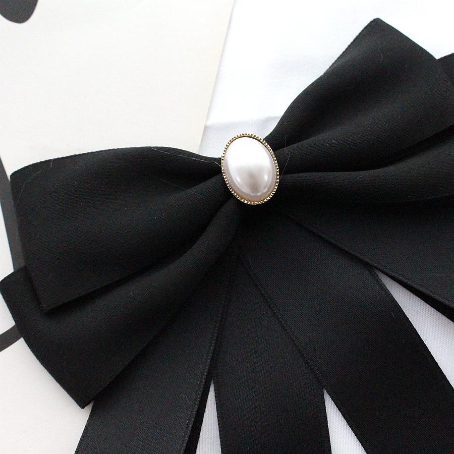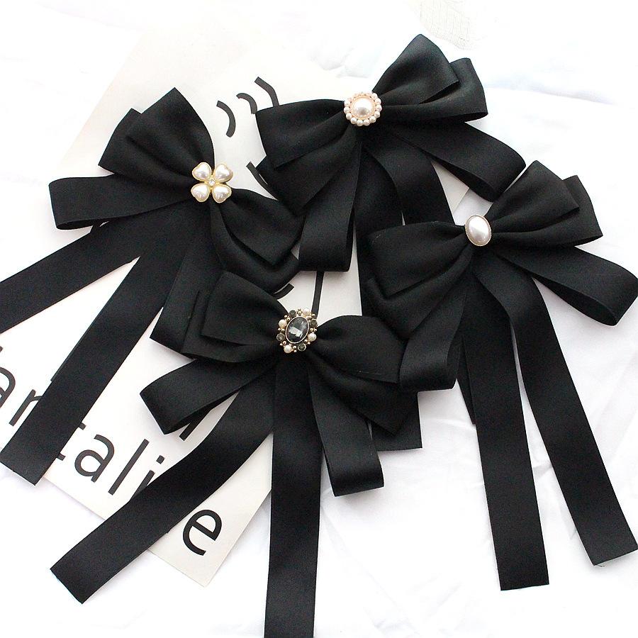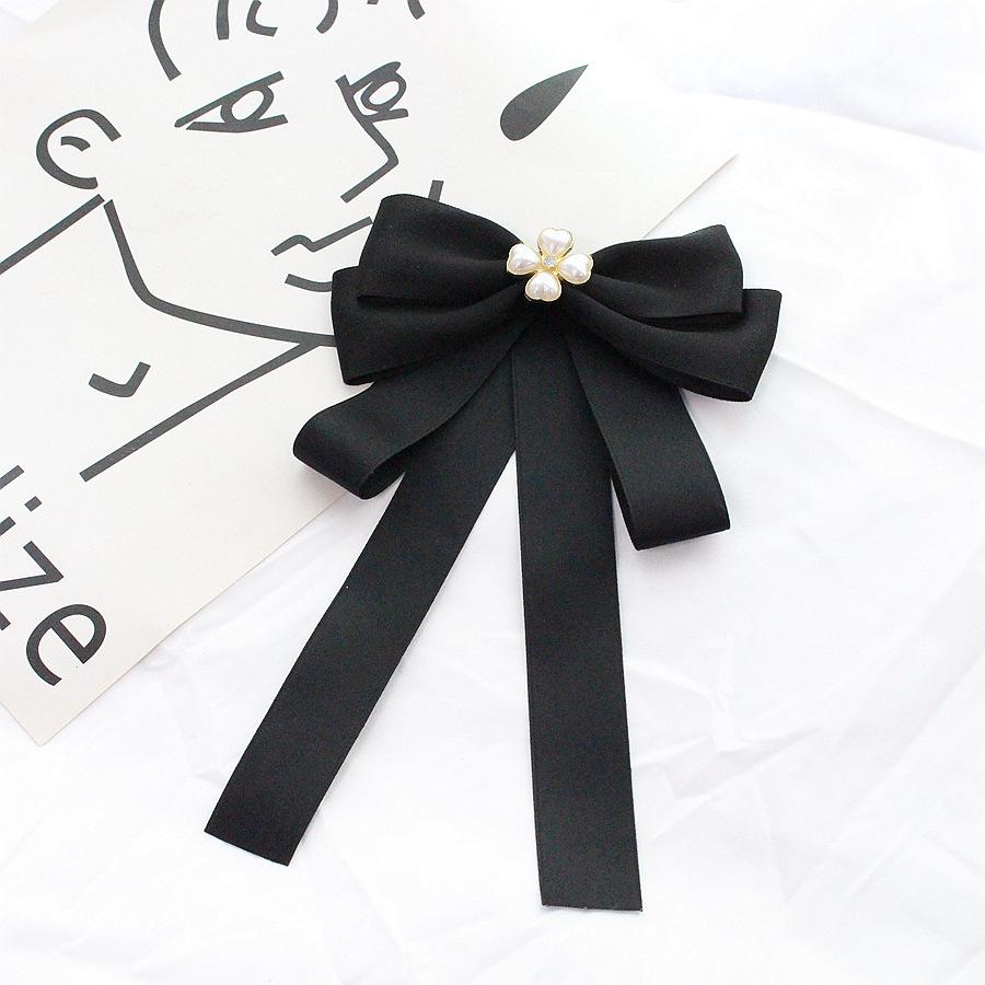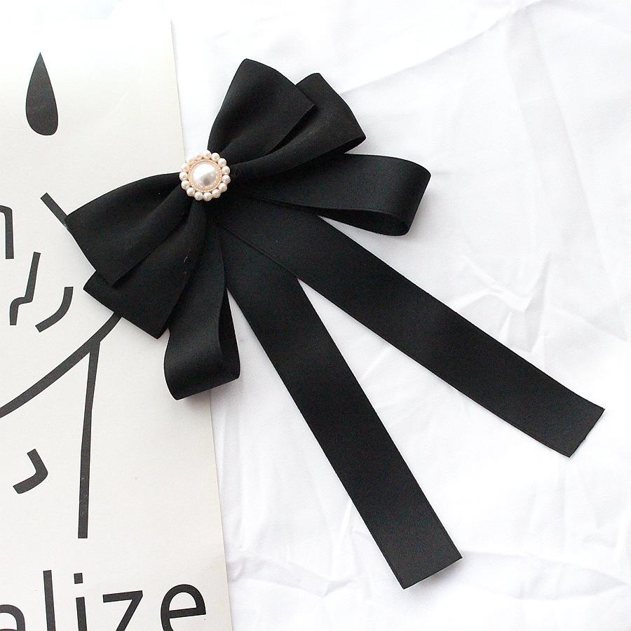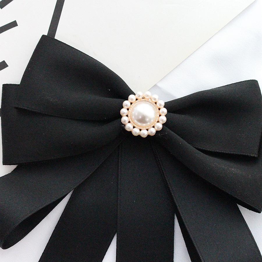 Corbata de moño femenina estilo Chanel moño grande negro mate perla que combina con todo pin de cinta accesorios estilo universitario femenino broche
