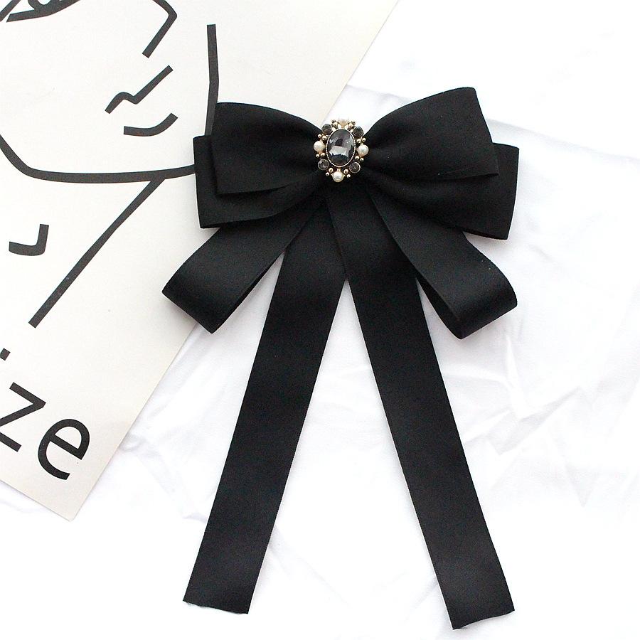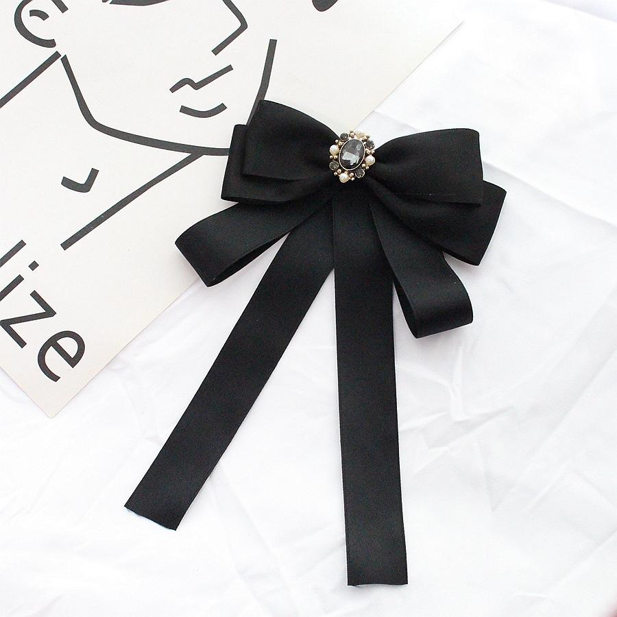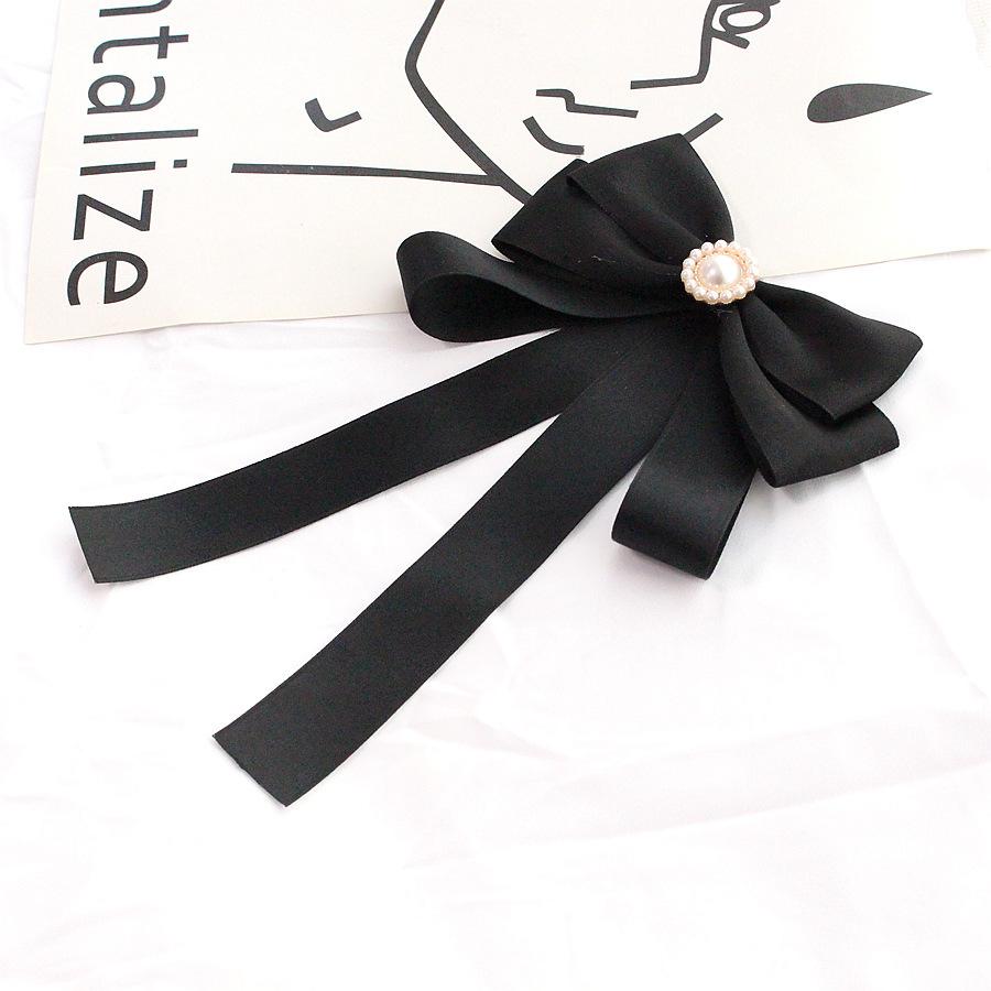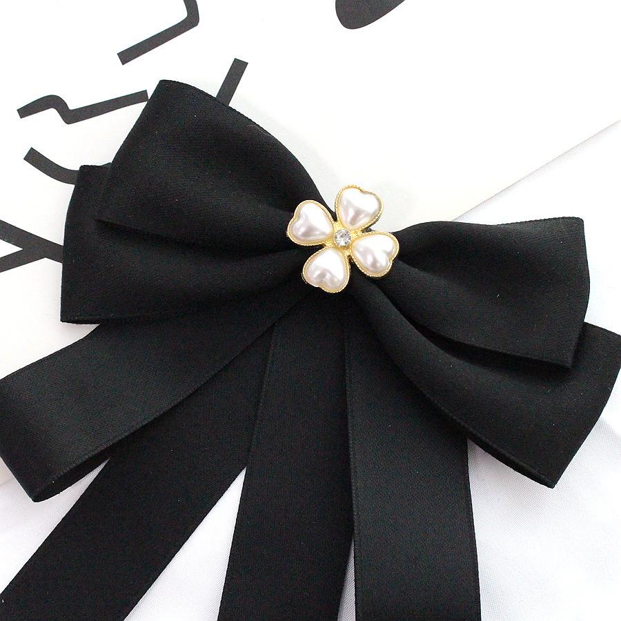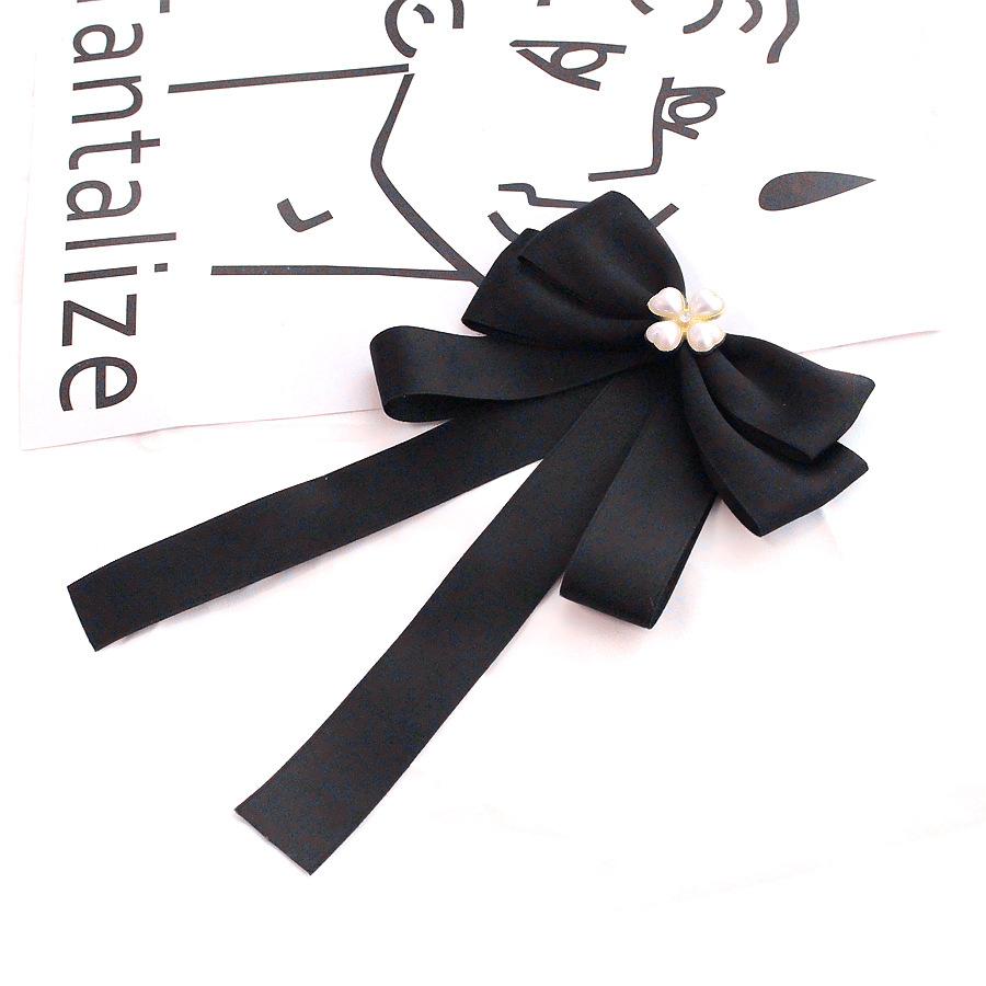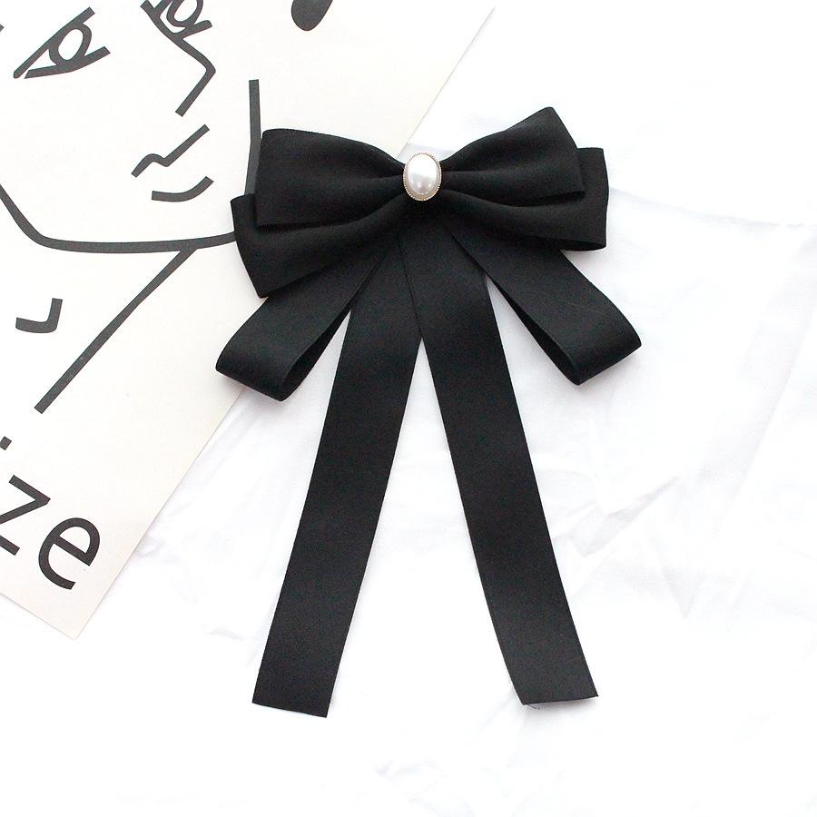Corbata de moño femenina estilo Chanel moño grande negro mate perla que combina con todo pin de cinta accesorios estilo universitario femenino broche