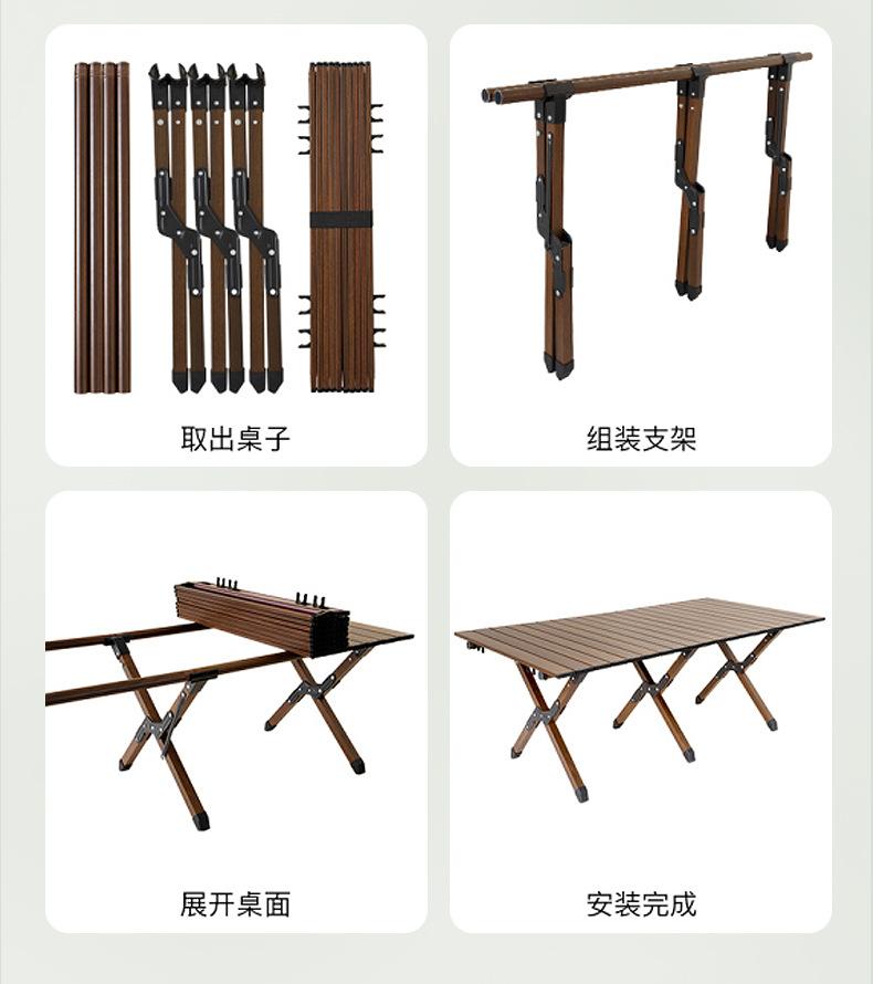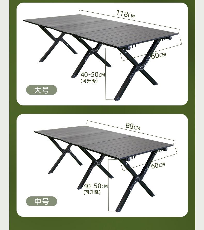 Mesa Plegable para Exterior Portátil Ajustable Enrollable para Camping y Barbacoa, Aleación de Aluminio Ligera