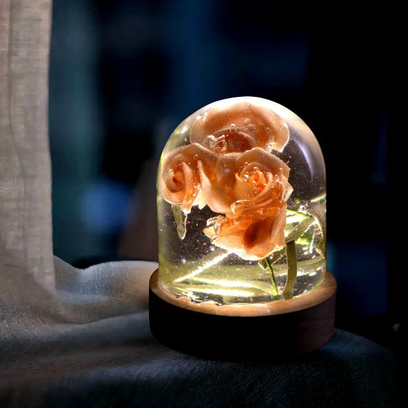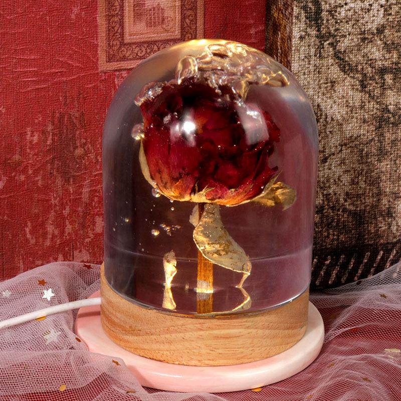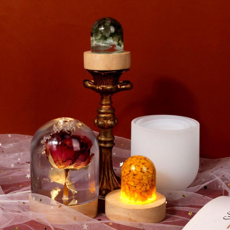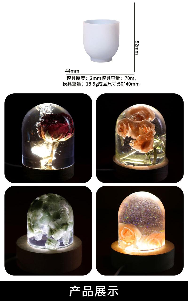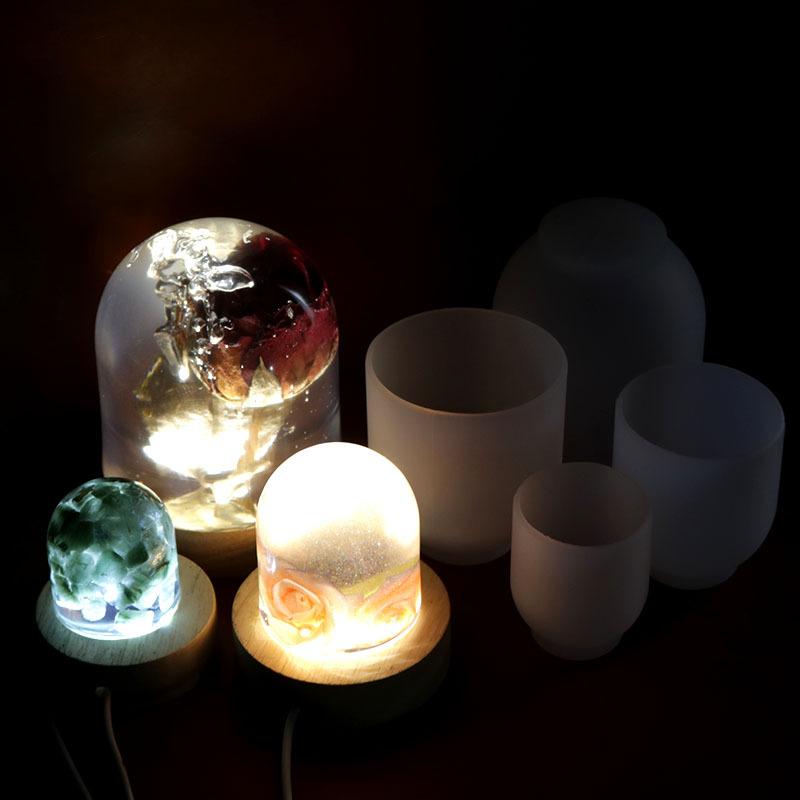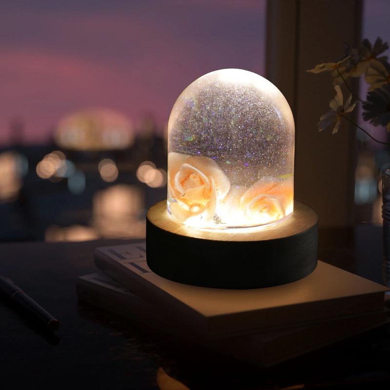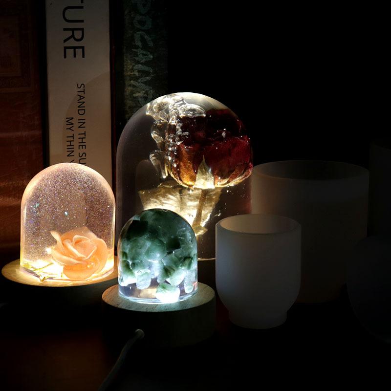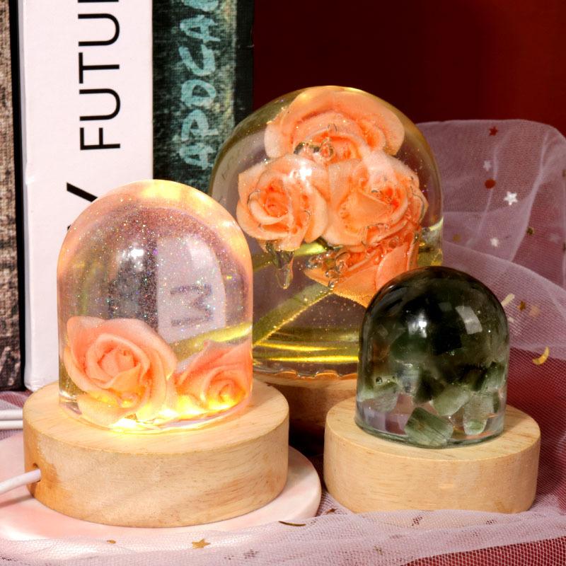 Portalámparas de madera maciza DIY, luz LED de noche, portalámparas de cristal redondo de madera con USB, artesanías al por mayor