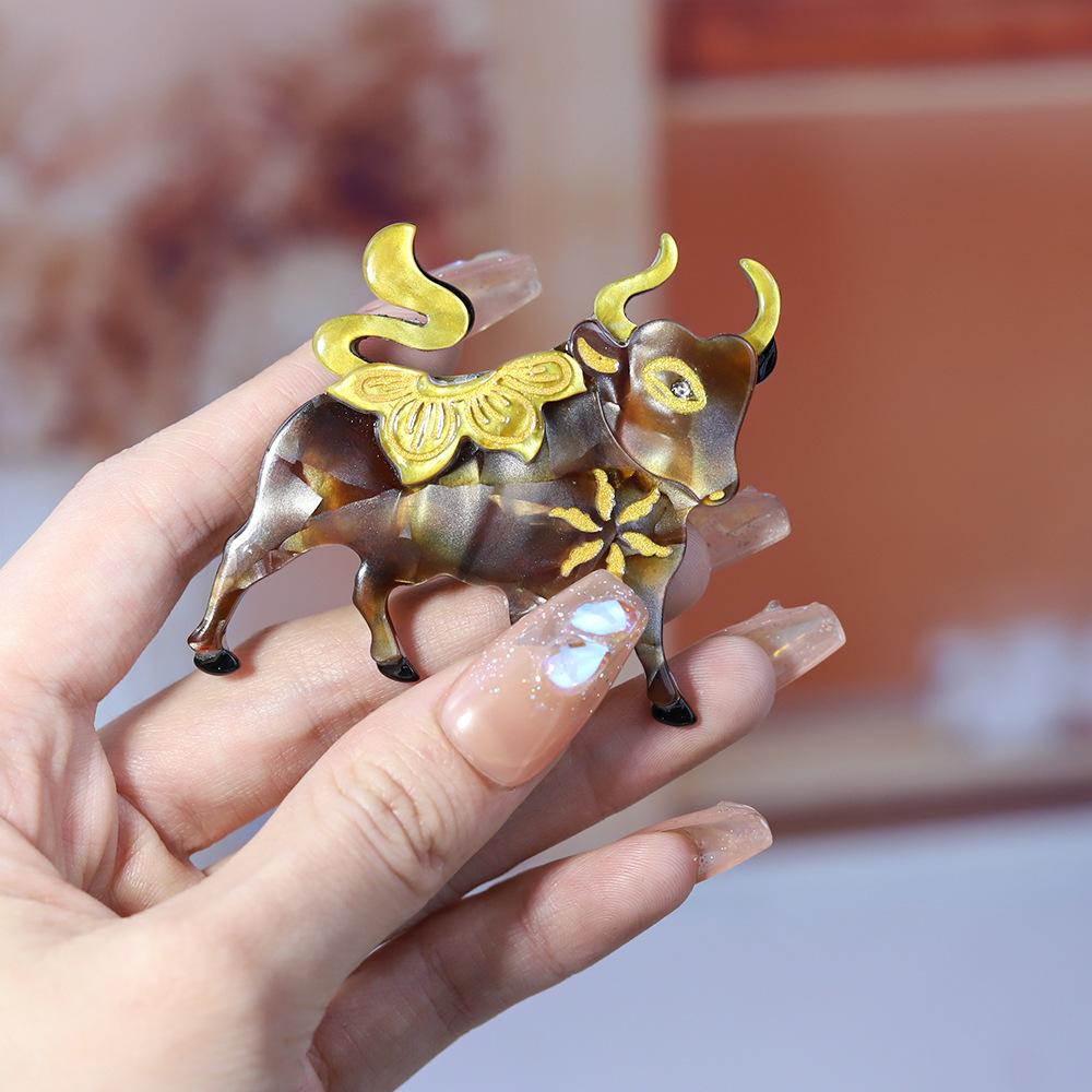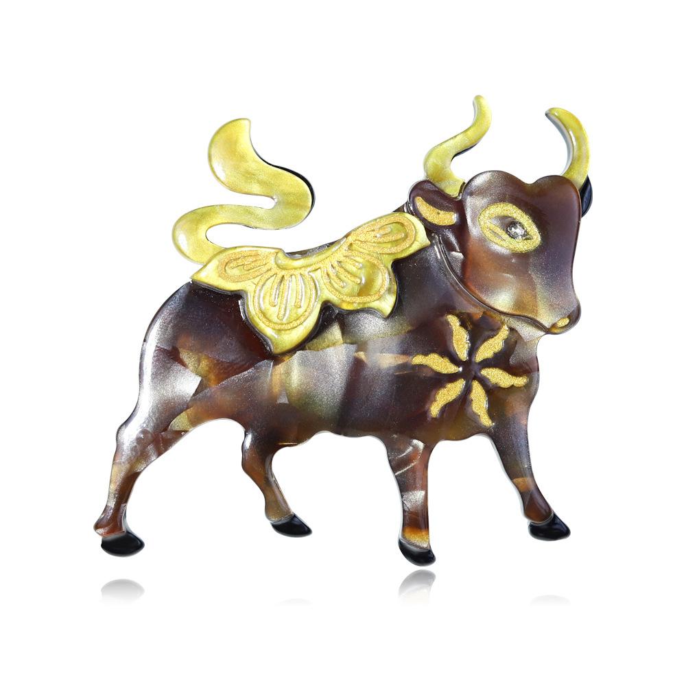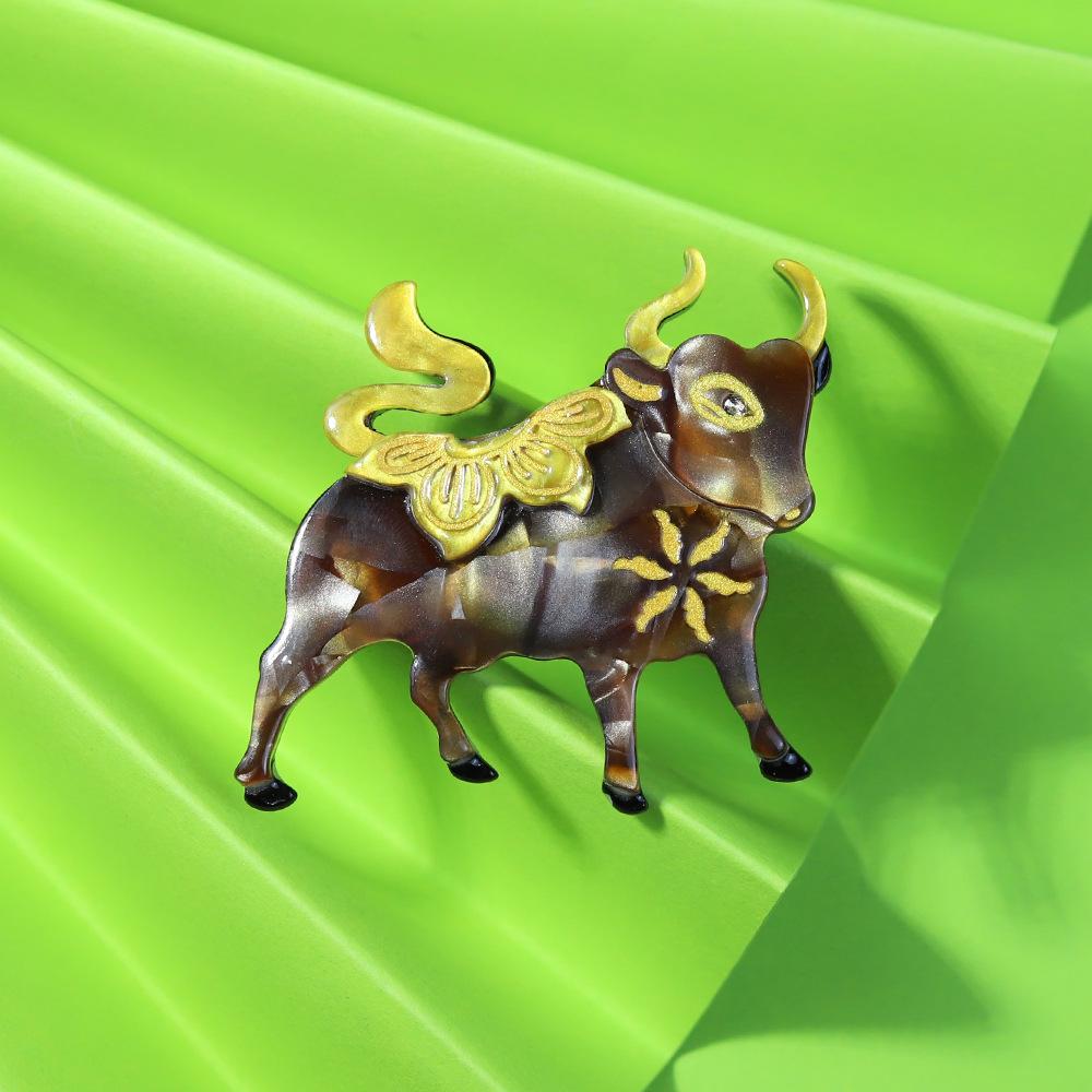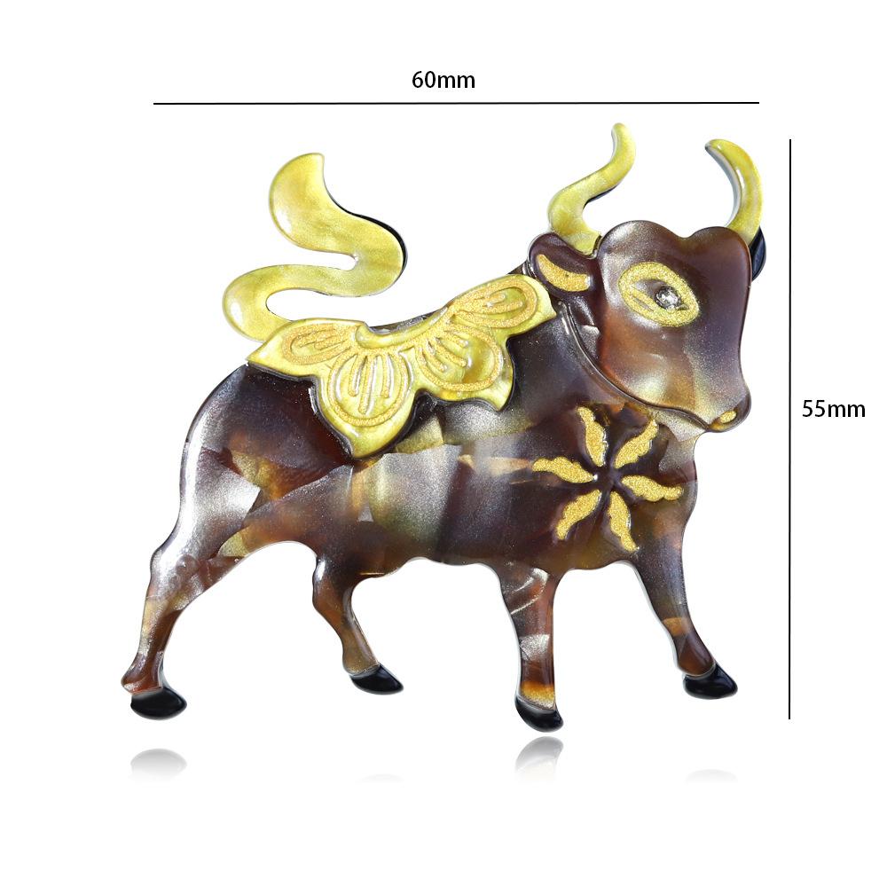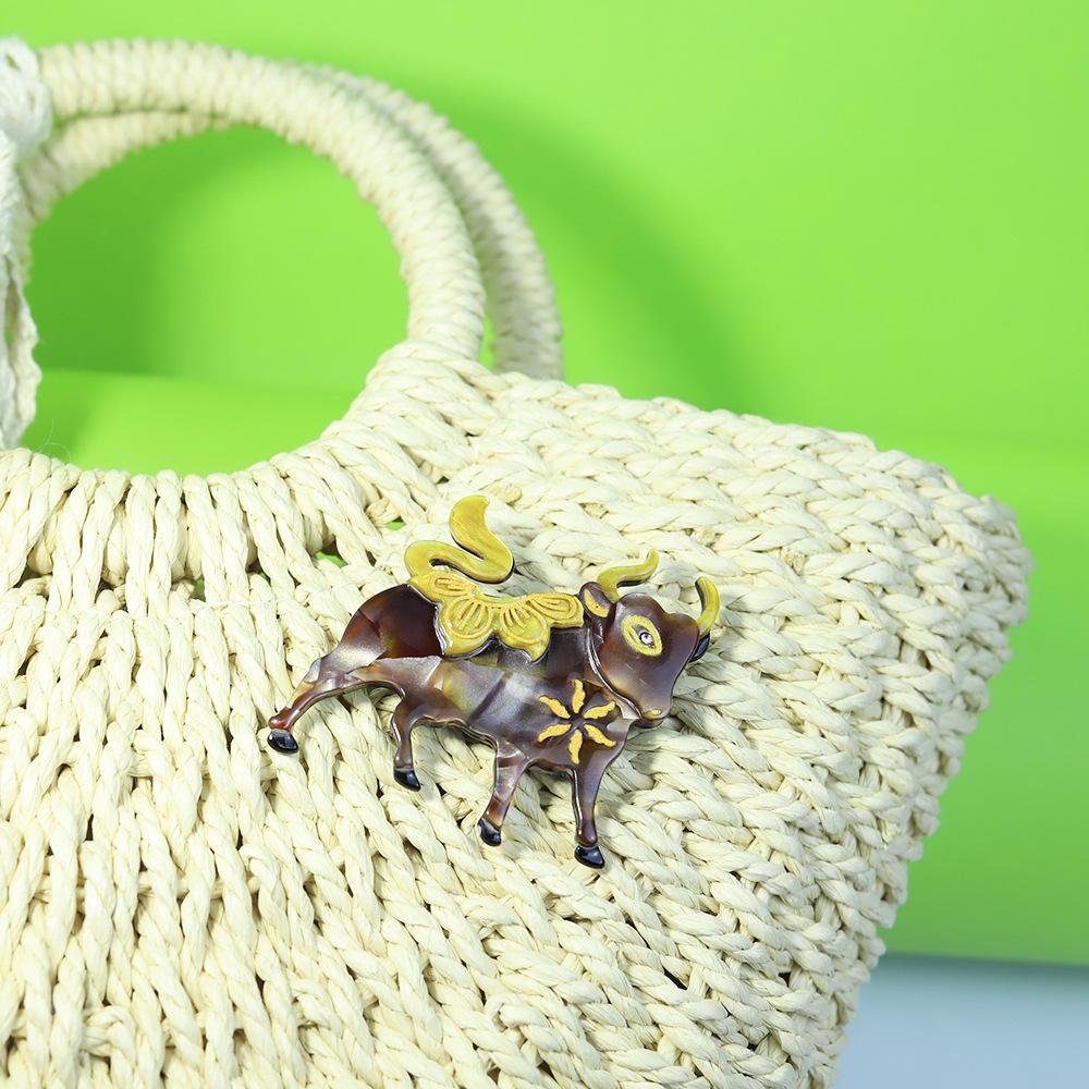Broche de acrílico con forma de animal, joyería de moda hecha a mano transfronteriza, alfiler de dibujos animados de toro, accesorios para bolsos y ropa de moda europea y americana.