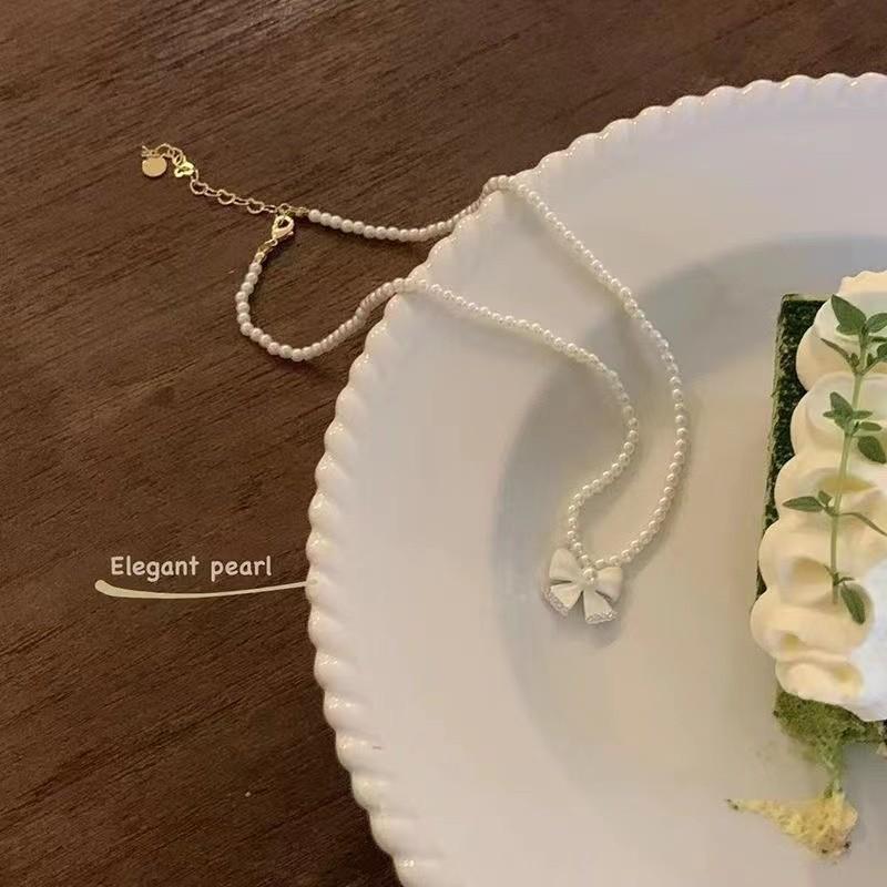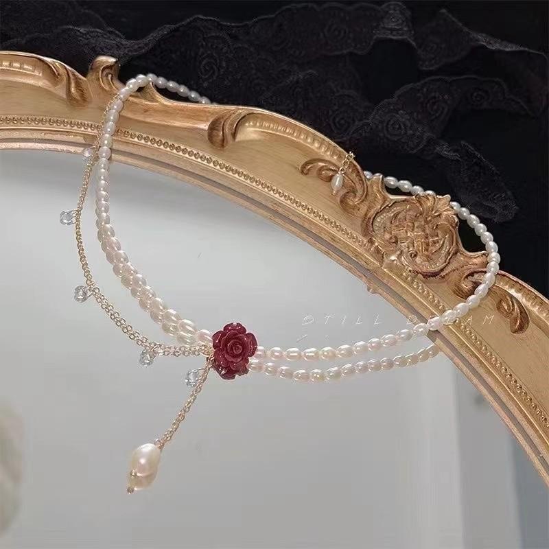 Pearl Drop Necklace, Sunflower Necklace, Pink Diamond Love necklace, Pearl Camellia Necklace, Bow Pearl Neckla...