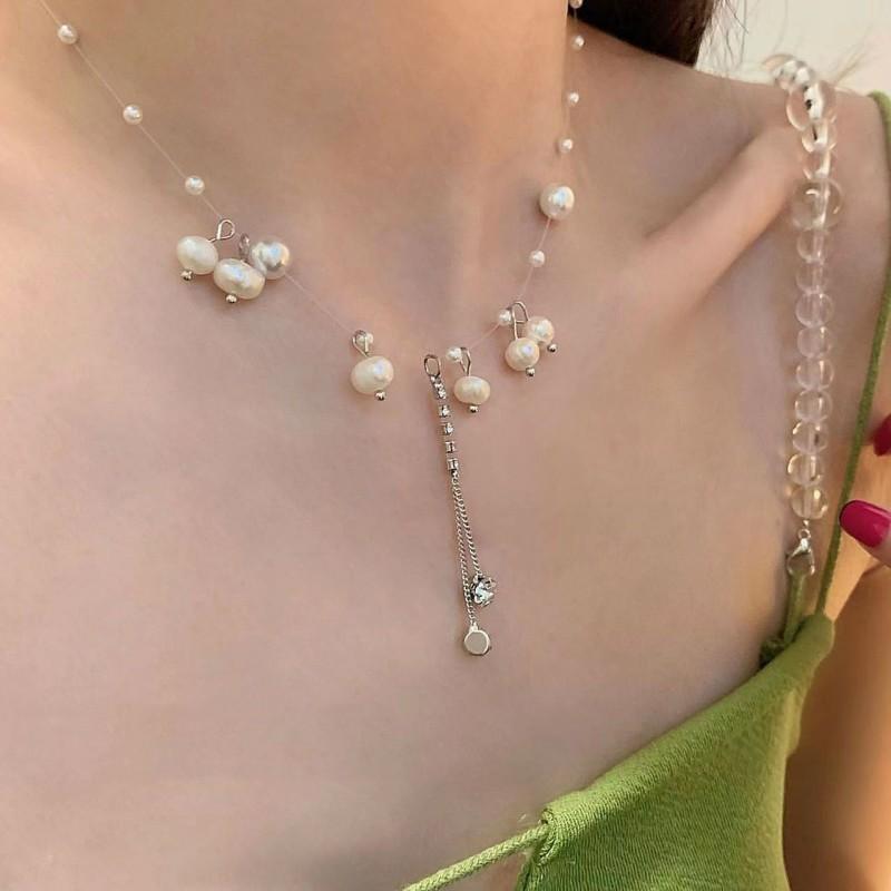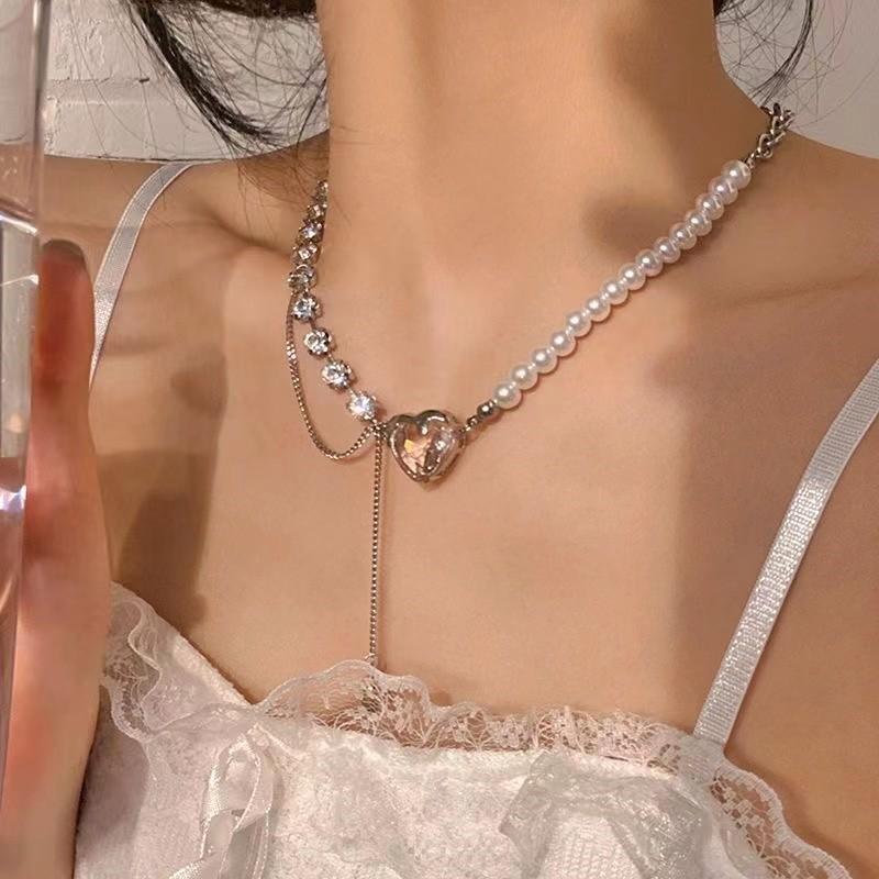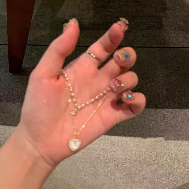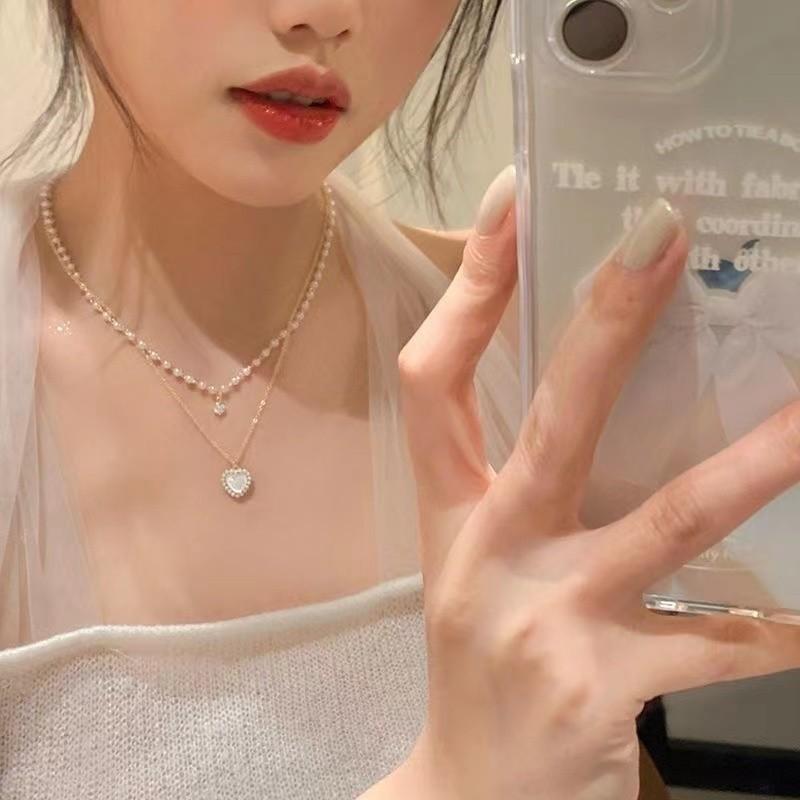 Collar de perlas de verano de doble capa con forma de corazón para mujer, ligero, lujoso, de alta gama, con nicho superpuesto, estilo popular, con cadena de clavícula dulce.