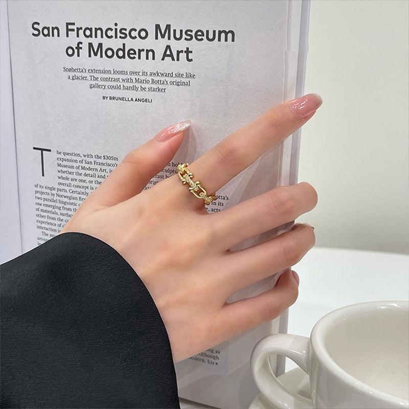 Anillo nicho ins moda personalidad celebridad de internet abierto anillo de plata esterlina 925 puro anillo de moda femenino micro diamante
