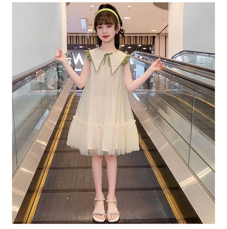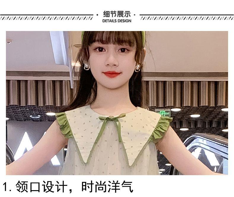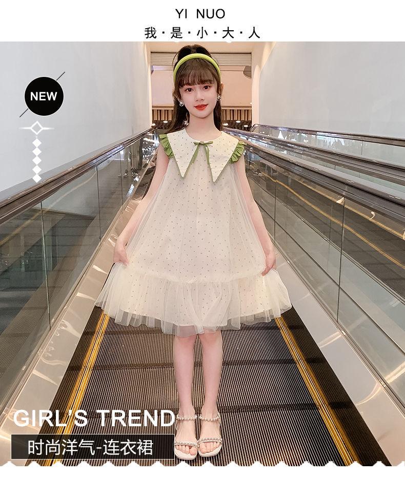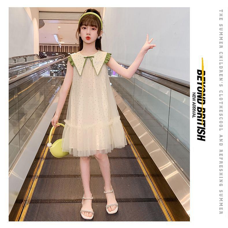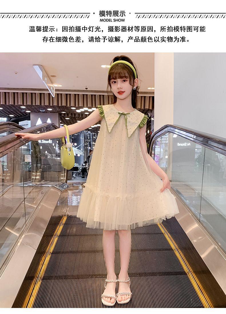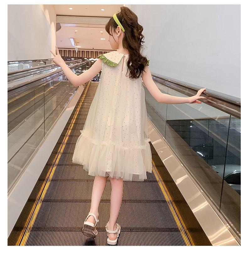 Vestido de Niña Verano Nuevo Vestido de Princesa Sin Mangas Moda Casual Vestido de Malla Niña Vestido Dulce Elegante