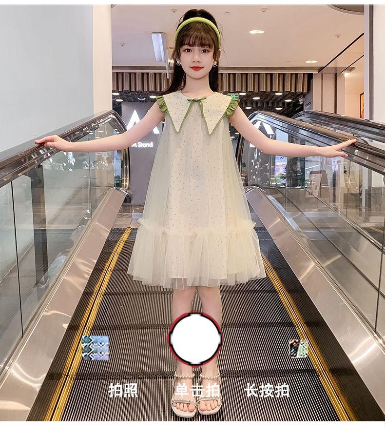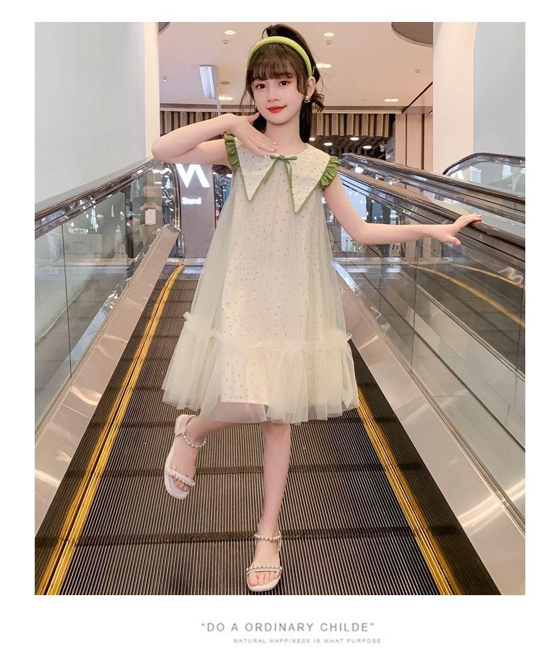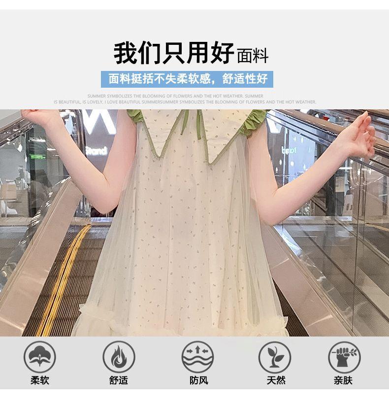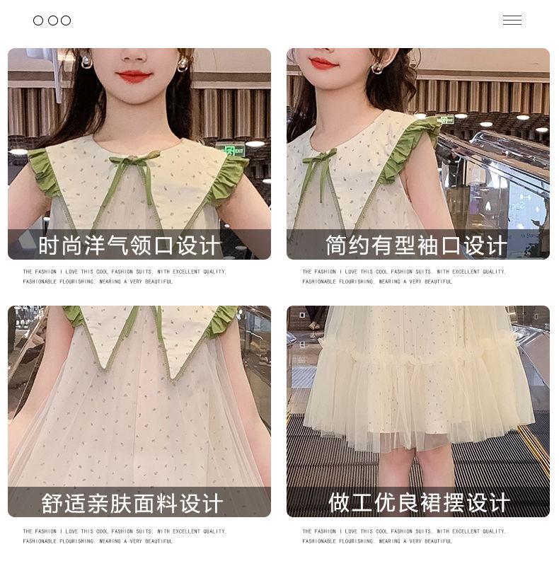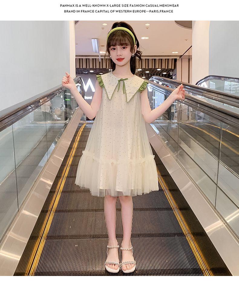 Vestido de Niña Verano Nuevo Vestido de Princesa Sin Mangas Moda Casual Vestido de Malla Niña Vestido Dulce Elegante