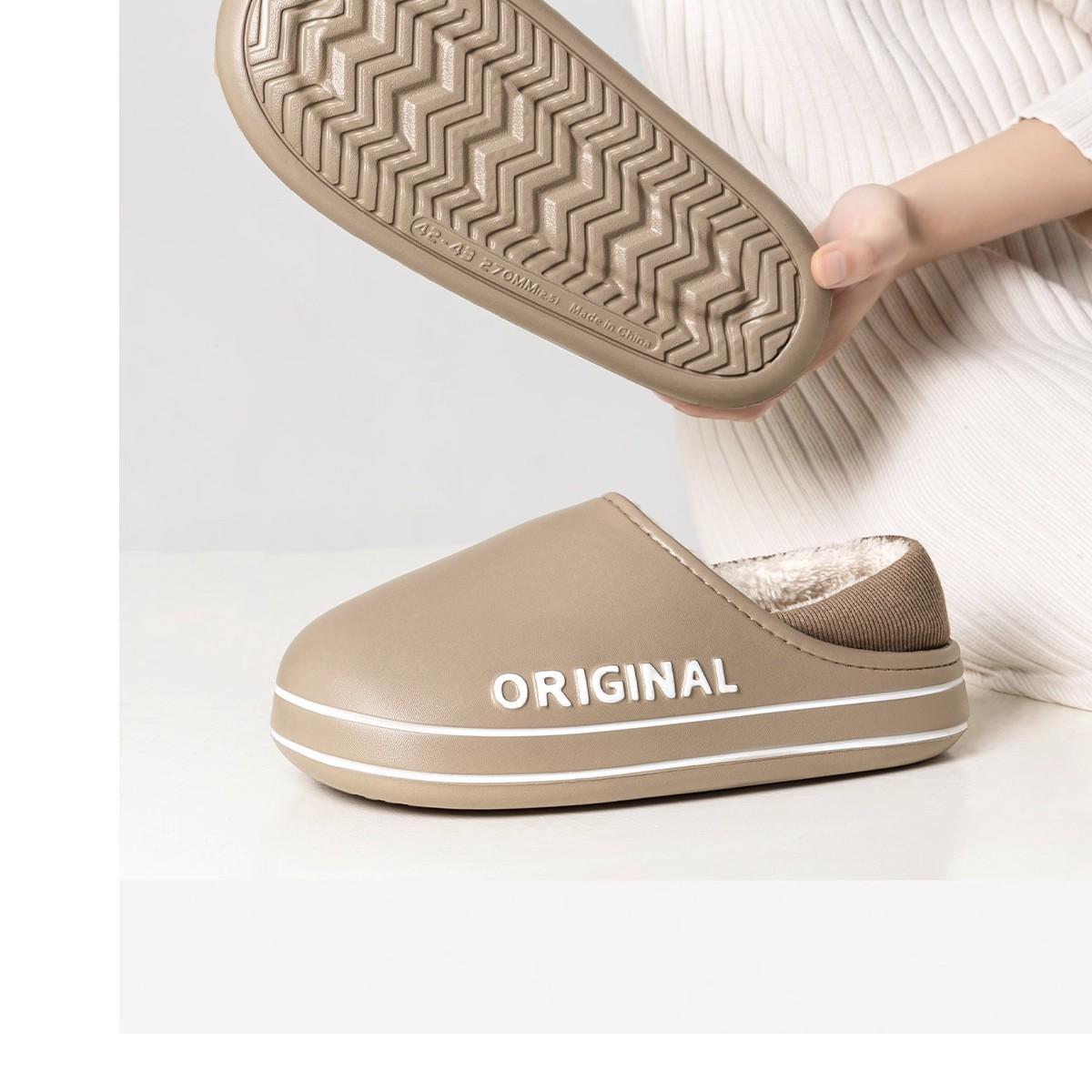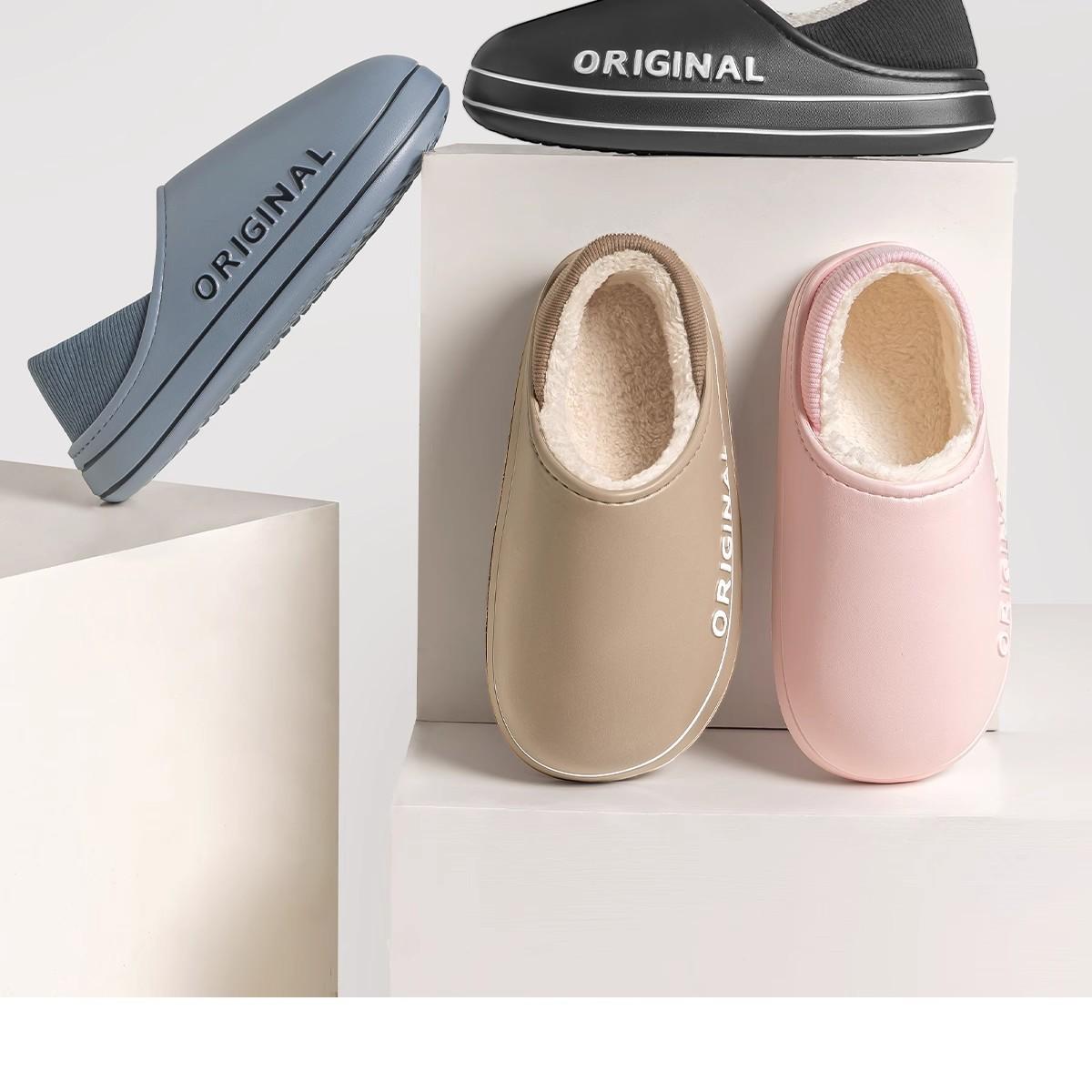 Pantuflas de algodón impermeables para mujer otoño e invierno tacón de bolsa interior para el hogar cálidas zapatos de luna antideslizantes para parejas zapatos de algodón al por mayor