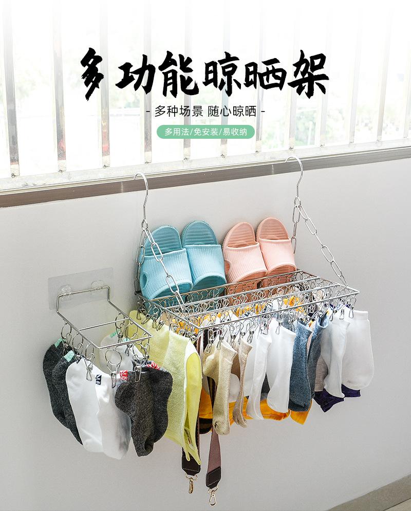 Wall-mounted square 8-clip socks rack (including wall stickers)