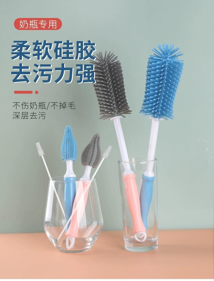 Cepillo para Biberón para Bebé Recién Nacido Cepillo Limpiador Especial de Silicona Traje Cepillo Limpiador Cepillo de Silicona para Tetina Shabu Cepillo para Pajilla