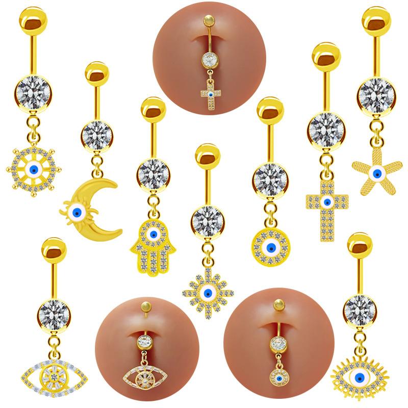 Gatte Europeo y Americano transfronterizo personalizado moderno serie de ojos anillo para el ombligo de diamantes completos uña para el ombligo nicho anillo para el ombligo Europeo y Americano