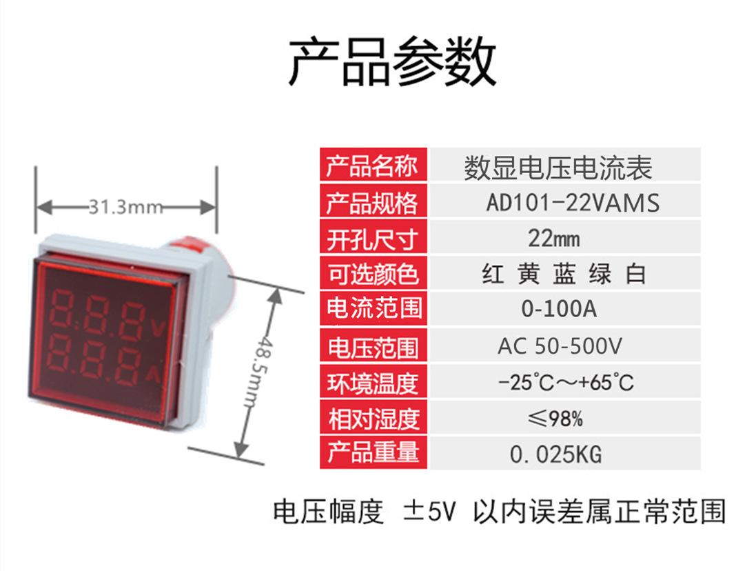 Voltímetro amperímetro Nino, indicador luminoso, medidor de doble pantalla digital, medidor de pantalla digital cuadrado, medidor de pantalla digital de 22 mm, mini indicador luminoso