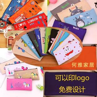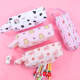 | Estuche de lápices portátil de dibujos animados japonés y coreano, bolsa de papelería de tela de gran capacidad, linda bolsa de almacenamiento, estuche para lápices con logo estampado con imagen para mujer |