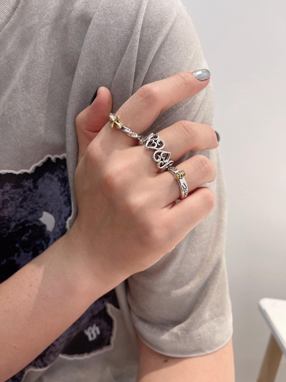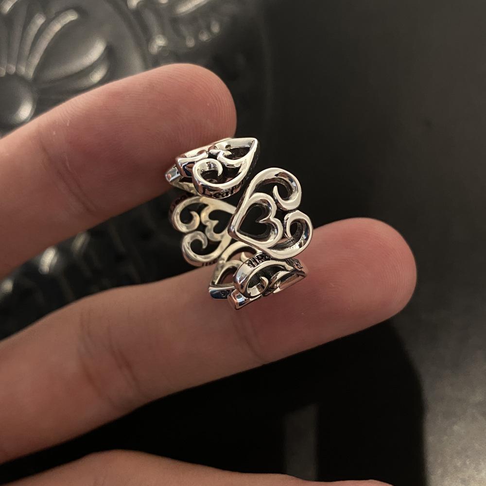 Anillo de Amor Hueco Personalizado de Plata S925 Estilo Coreano para Mujer Moda Retro Patrón de Borde Ancho Anillo Abierto para Dedo Anillo para Dedo de Comida Moderno