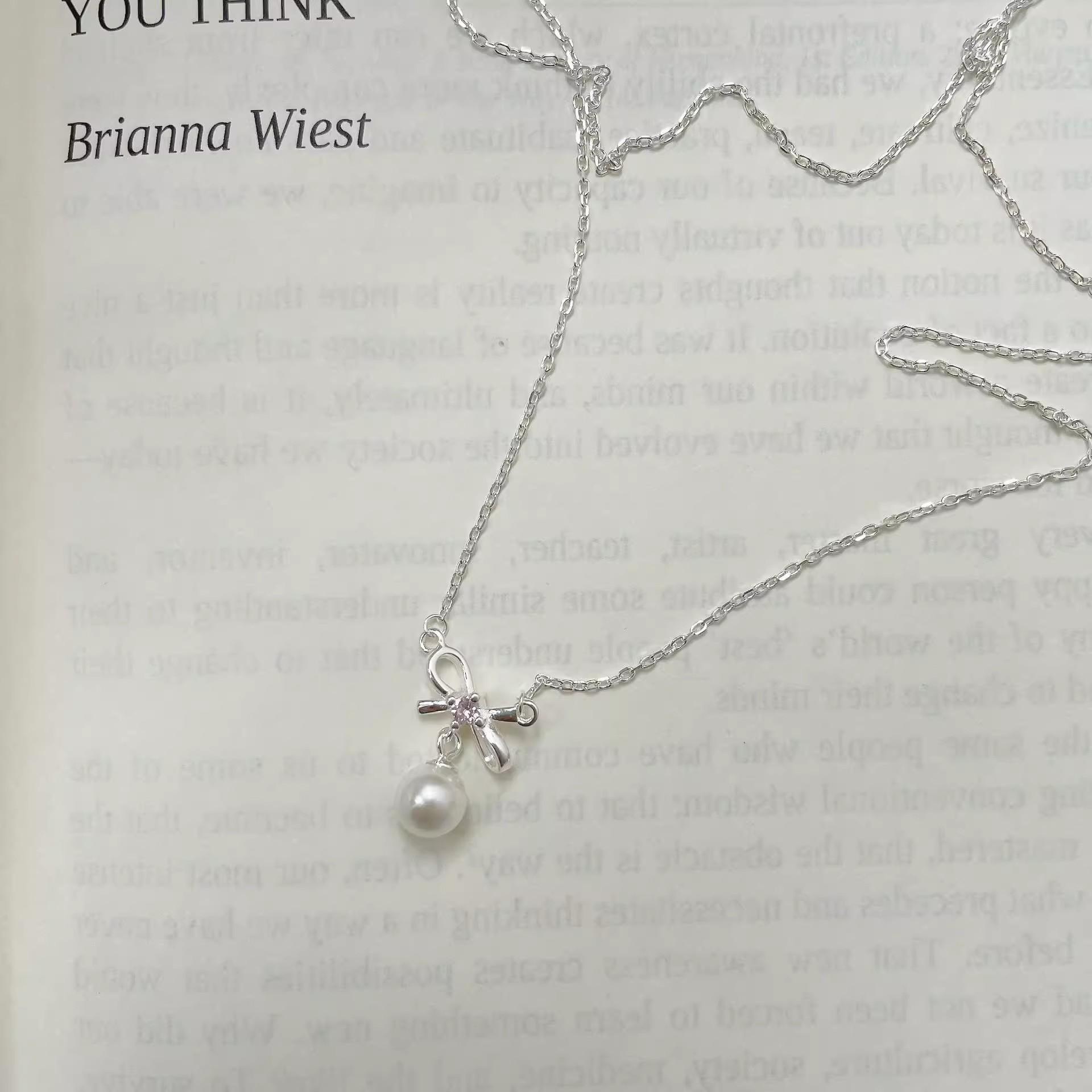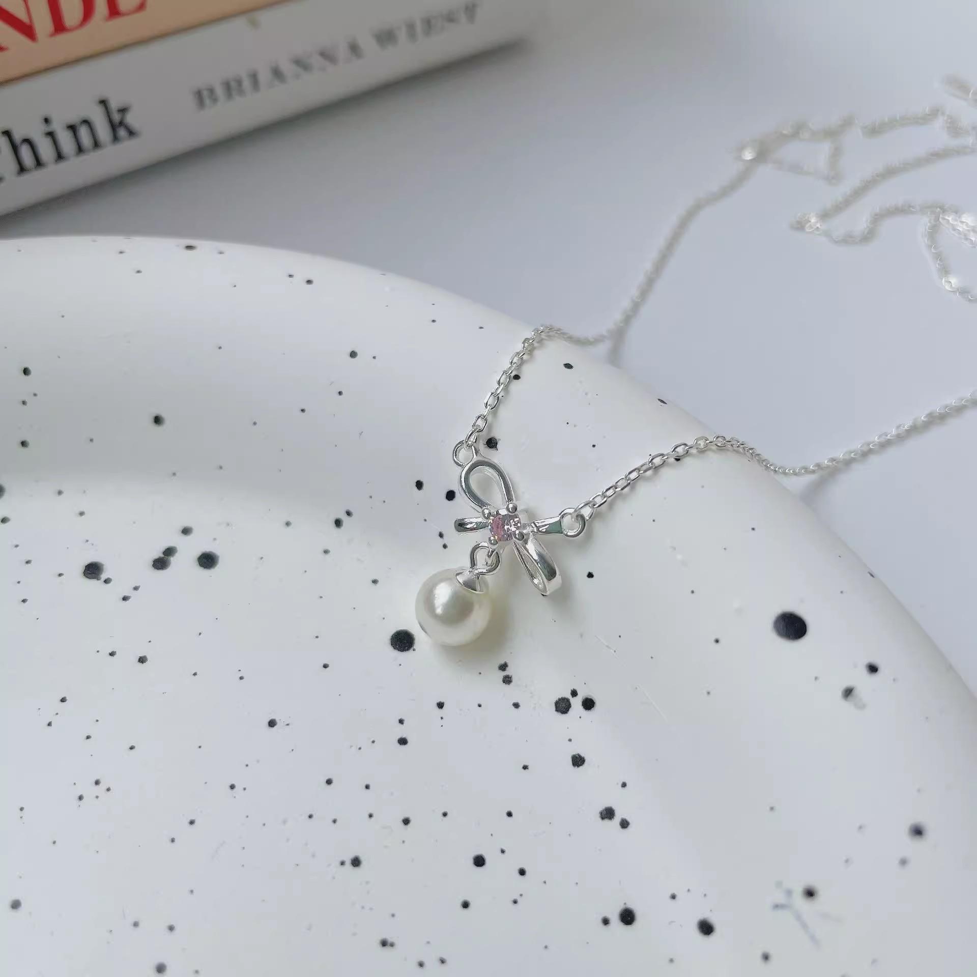 Bow pearl necklace (White Diamond), Bow pearl necklace (pink diamond)