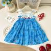 Vestido de verano para niñas, elegante, personalizado, de marca moderna, estilo coreano, con flores de gasa, estilo princesa.