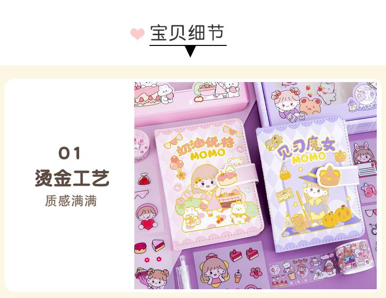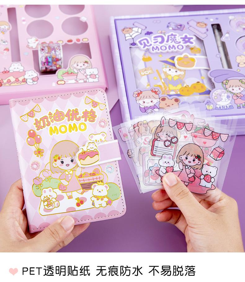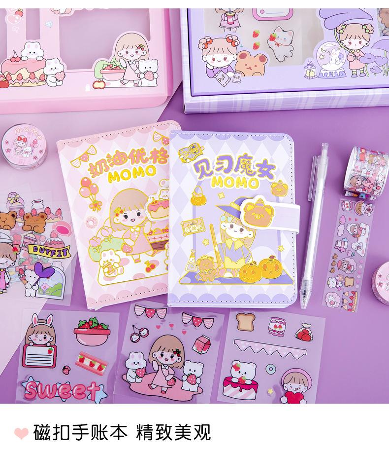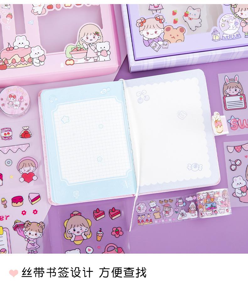 Set de Libro Mayor de Mano Caja de Regalo Lindo Cuaderno de Mano para Niña Estudiante Stickers Guka Set Completo Regalo para Niña Venta al por Mayor