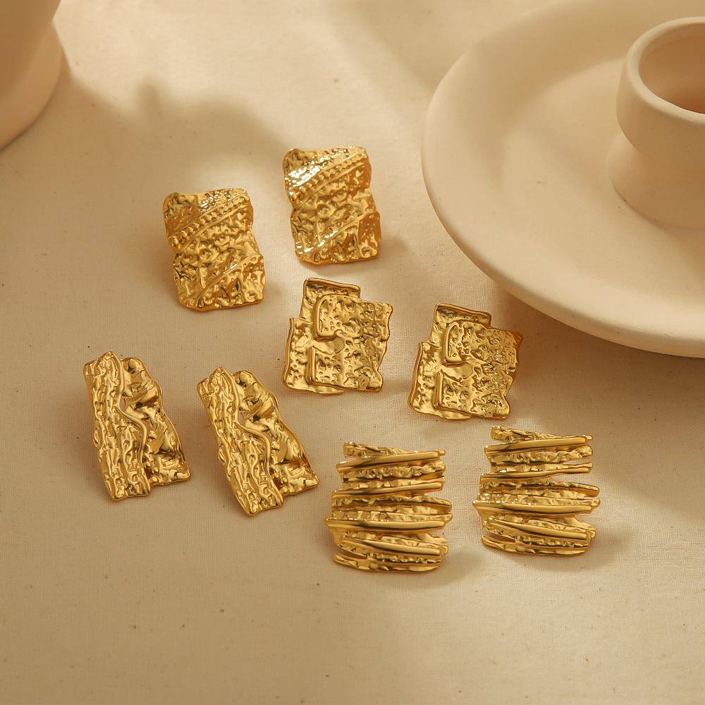 Pendientes de acero inoxidable de oro de 18 quilates con textura plisada irregular de diseño retro transfronterizo nuevo, pendientes de personalidad de moda para mujer